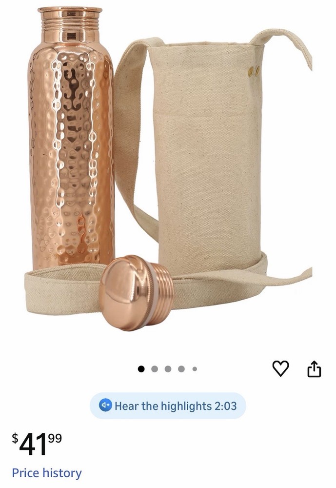 34oz Pure Copper Water Bottle - Handmade Hammered Finish - Ayurvedic Health USA