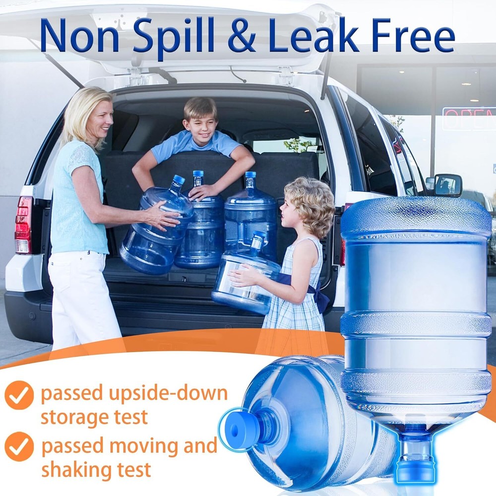 3 and 5 Gallon Water Jug Cap, Silicone Reusable Replacement Non Blue Product Details Material: Silicone Color: Blue Brand: Gofriipai Style: Easy ON & OFF Product Dimensions: 2.2"L x 2.2"W [Non-Spill & LEAK FREE] - Fits for 2, 3, 5 gallon water bottle SNAP TOP with 55mm - 60mm opening , The caps are flexible and pretty tight, sealed perfectly for SNAP TOP bottle upright and sideways storage. SCREW TOP bottle only for up storage, both can be used for water dispenser plastic bottles. [Reusable Water Jug Caps] - Stop use one time plastic caps, which can used for thousands times saving your money. Great solution for indoor and outdoor water store, water dispenser caps, water jug caps for refill. [Easy Put ON & OFF] - The ordinary plastic caps are very difficult to remove, you can take off our caps with your finger easily, which can saving your hands and fingernails. [Anti-Drop Off Small Lids] : We upgraded water jug cap, make a new Anti-drop off CHOKE POINT to prevent the middle lids falls inside the container, the cap is thicker than before. [Material & Service] - Made of 100% food grade silicone BPA Free, Sturdy & Durable. High temperature resistant, Dishwasher safe. 100% Satisfaction Customer service , just contact us if you have any problem about our water jug caps.
