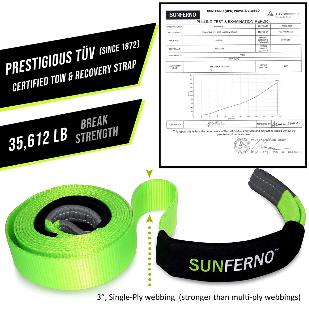 Recovery Tow Strap 35000lb Break Strength - Lab Tested Heavy Duty 3"x20' Winch Snatch Straps - Recover Your Vehicle Stuck in Mud/Snow - Protective Loops - Off Road Towing Rope Truck Accessory PULL YOUR STUCK VEHICLE WITH CONFIDENCE – Designed for heavy-duty use, our 20 ft, 3-inch recovery straps are perfect for towing and recovering cars, trucks, or tractors. With a 35,321 lb break strength, these straps ensure safe and reliable recovery in tough situations. EXCELLENT RECOVERY STRAP WITH 7% MAX STRETCH – Featuring reinforced eye loops and a single-ply design for superior durability, our recovery straps provide controlled stretch and pull action for smoother towing. Ideal for trucks and heavy-duty vehicles, they also come with a protective sleeve for added safety. VERSATILE TOOL FOR TREE AND STUMP REMOVAL – Whether you're dealing with fallen trees, stumps, or heavy debris, this tow strap is perfect for connecting to a winch and handling tough removal tasks. The high-strength design helps you tackle outdoor jobs with ease. HIGH VISIBILITY & WATER-RESISTANT – Built to be seen even in low-light conditions, this strap’s bright color ensures high visibility during nighttime recovery. Plus, the water-resistant material makes it easy to clean and store after use. BONUS ACCESSORIES INCLUDED – Each tow strap comes with a protective sleeve, wrap tie, towing & recovery guide, and a carry bag for easy storage, offering exceptional value and convenience. Shipping We offer FREE shipping on all orders! We ship within three - five business days of payment, usually sooner. We use a selection of shipping services such as UPS, FedEx, USPS etc. We only ship to the lower 48 states, no APO/FPO addresses or PO Boxes allowed. Local pickups and combined shipping options are not provided at this time. Return You can return a product for up to 30 days from the date you purchased it. Any product you return must be in the same condition you received it and in the original packaging. Please keep the receipt. Payment We accept payment by any of the following methods: PayPal Please pay as soon as possible after winning an auction, as that will allow us to post your item to you sooner! Feedback Customer satisfaction is very important to us. If you have any problem with your order, please contact us and we will do our best to make you satisfied. Contact Us If you have any queries, please contact us via ebay. We usually respond within 24 hours on weekdays. Please visit our eBay store to check out other items for sale! Thank you for shopping at our store.