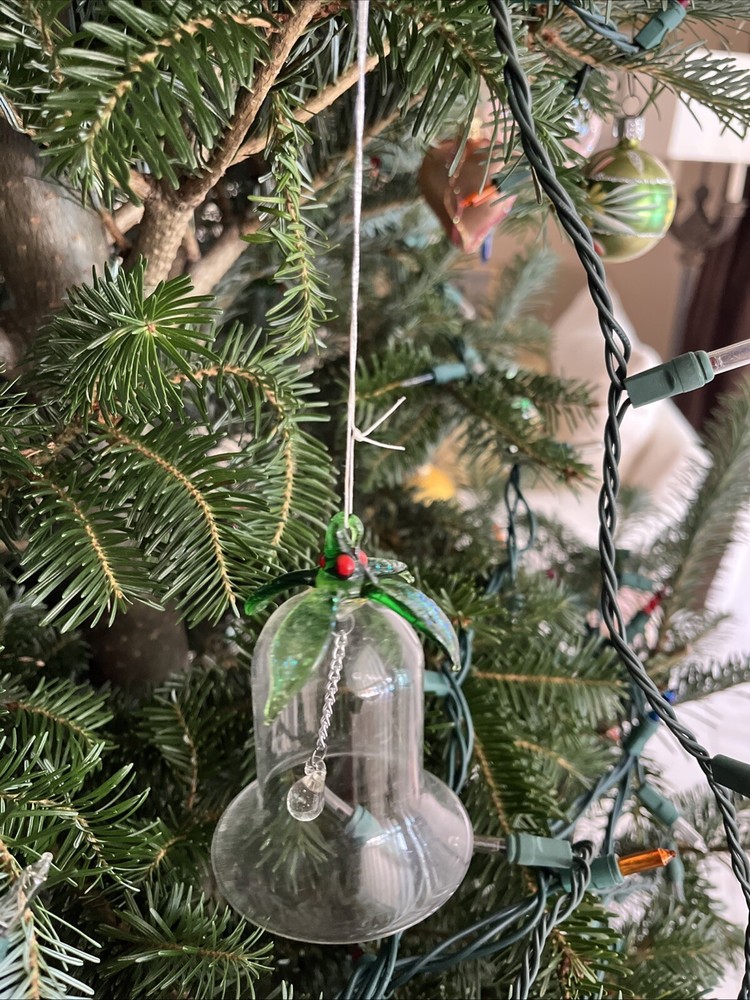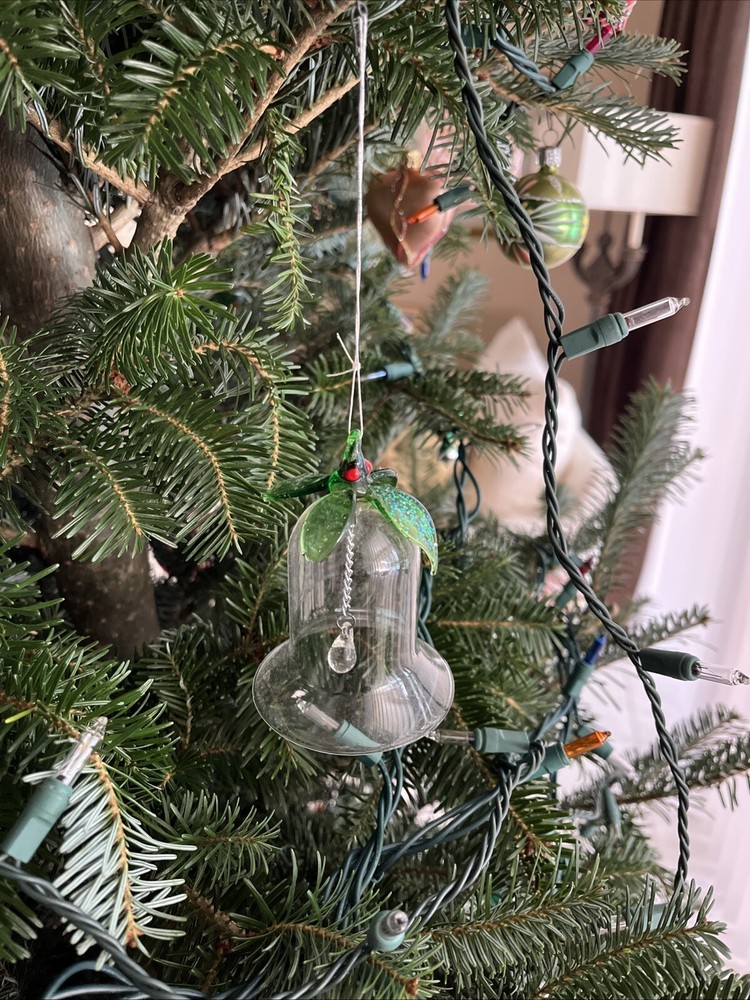Glass Bell Christmas Ornament 3 1/2" Tall x 2 1/2" Diameter, Long hanging glass ball.