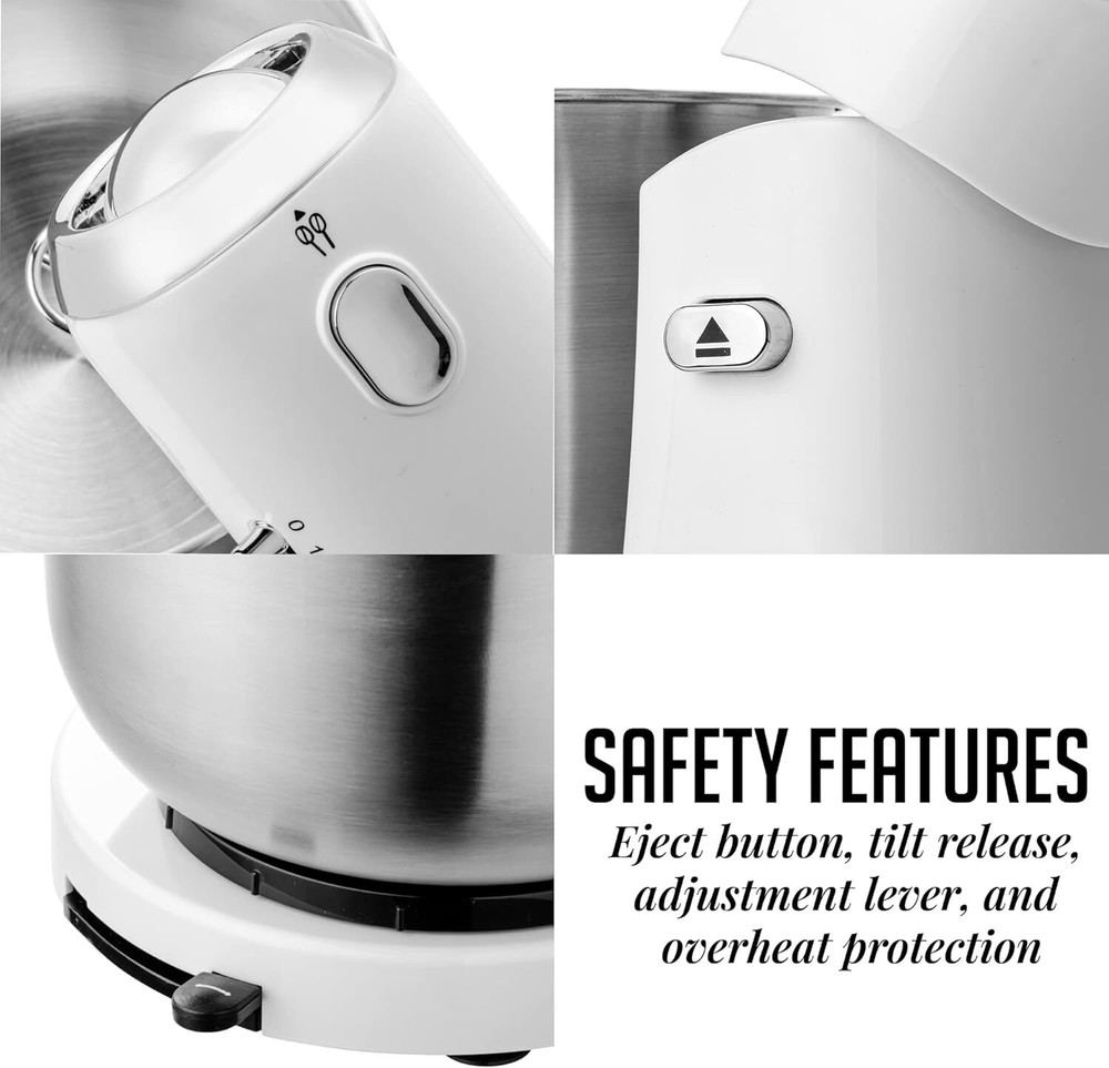 Product Description Electric Kitchen Stand Mixer with 3.5-Quart Removable Stainless Steel Mixing Bowl, 5 Speed Control, 250-Watt Power, 2 Blender Attachment Egg Beater Whisk & Dough Hook White SM680W MULTIFUNCTION – Make sweet, savory sweets and desserts easily with our Electric Professional Stand Mixer Series. Puree mashed potatoes for your kids or mix batter for your cupcake- all without getting your hands dirty. This will handle all your blending and mixing needs for a wide variety of recipes. MIX IT WITH EASE – This mixer, which has a powerful 250W motor, may be used to stir, knead, beat, whip, or mix culinary ingredients. With its five mixing speeds, you can quickly whip batter and cream cold butter for your cakes! PREMIUM ATTACHMENTS – The stand mixer comes with a stainless-steel mixing bowl that can be removed easily thanks to its tilting motor head. Plus, it has two kinds of attachments: two whisks for aerating your batters and two dough hooks for kneading dough. COMPACT DESIGN – Space-saving and easy to store, this household stand mixer with easily fit anywhere in your kitchen, countertop, and cabinets. Its classic retro style will give the aesthetic vibe that is surely a head-turner to your guests. US-BASED CUSTOMER SERVICE LETS YOU BUY WITH CONFIDENCE – warranties that the product shall be free from defects in material and workmanship under normal use and conditions, for 1 year from the original purchase date. About Us We are a reputable seller with many years of experience selling on eBay. Our goal is to provide high-quality products and excellent customer service. Shipping Items will be shipped within 1-3 business days when we received payment. (Orders are not processed on weekends & holidays) Tracking information will be sent once item is shipped. Delivery time depends on destination and other factors Item is shipped to ebay address. Leaving correct address can minimize delay. For international shipping and shipping to Guam, Hawaii and Alaska, Please contact us before placing the order. International buyers please note: Import duties, taxes and charges are not included in the item price or shipping charges. These charges are buyer’s responsibility. We will try our best to reduce the risk of the custom duties. Local pick-up is unavailable at the moment. Contact Us We reply any email messages within 1 business / working days(off-duty at weekend). If you do not get a response from us, then please check your junk or spam mailbox. Our Business hours: Mon-Fri 9:00-18:00, UTC/GMT +8 hours. Please contact us either by clicking "contact seller" in the "purchase history" section or simply click "ask a question" at the bottom of this page. If you are unsatisfied with our item or service, please contact us before leaving any feedback. We are committed to resolve all issues in a friendly and satisfactory manner.