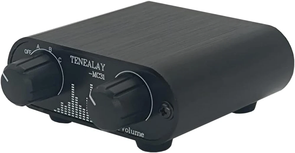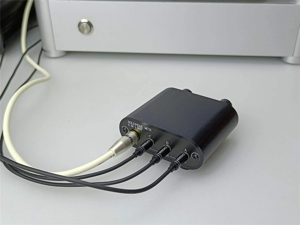 Switch audio source input, and adjust volume level Up and Down easily. 3 IN 1 OUT 3.5mm 1/8" aux input output jacks. Select signal and control volume in one box. No amplification function Build in aluminium CNC chassis, looks nice and durable. No need power supply. Plug and play. Description: This MC31 box is a mini size input signal switch box, with volume controller, you can select signal and adjust volume quickly without plug/replug cables and using the music player any more. Product design is passive selector and pure volume level control, it is not affects sound quality or color added. (note it has no amplification function) Very conveniently to control volume to get a comfortable listening level. Connectors: 3 x 3.5mm (1/8") input 1 x 3.5mm (1/8") output (It can use in both directions, it is reversible, use as 3 IN 1 OUT, or 1 IN 3 OUT, 3 outs are not at the same time) Use instruction: No need power supply. Plug and play. Switch the left knob: for select source ways. Turn the right knob: for Increase or Decrease volume.