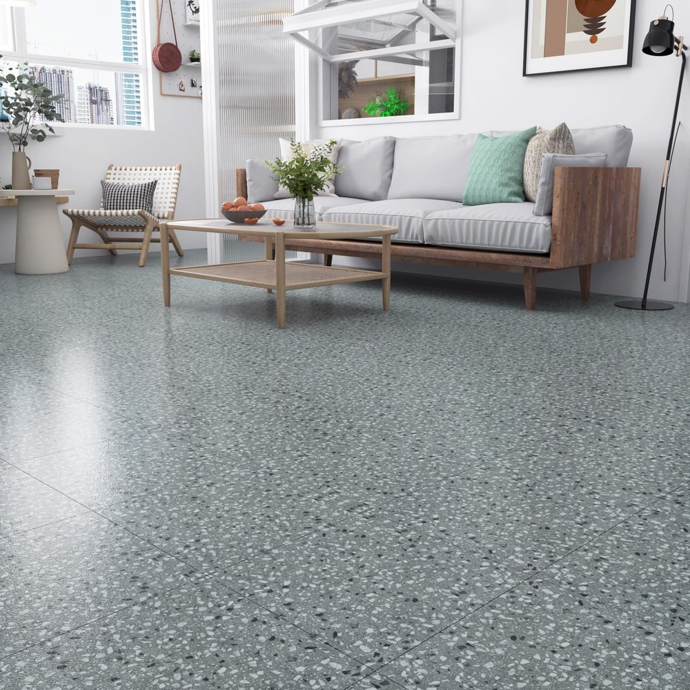 [SIZE] Length: 12 inch; Width: 12 inch [THICKNESS] 0.057 inch [MATERIAL] Vinyl Floor Tiles [COLOR] Black White Grey Peel and Stick Floor Tile [STYLE] Terrazzo Peel and Stick Floor Tile [DESIGN CONCEPT] Natural terrazzo look brings timeless charming for your floor! [ADVANTAGES] 1. Terrazzo Peel and Stick Floor Tile Waterproof: peel and stick floor tile, self adhesive floor tiles, no extra glue needed. 2. Terrazzo Peel and Stick Floor Tile Waterproof: removable floor tiles without sticky residue, great temporary flooring for renters. 3. Terrazzo Peel and Stick Floor Tile Waterproof: 12 x 12 peel and stick floor tile, vinyl floor tiles, vinyl laminate flooring, linoleum flooring. 4. Terrazzo Peel and Stick Floor Tile Waterproof: Waterproof flooring, stain resistant, moisture-proof, anti-slip, easy to clean. 5. Terrazzo Peel and Stick Floor Tile Waterproof: This peel and stick tile floor can be used as bathroom floor tile, shower floor tile, kitchen floor tile, it also can stick on bedroom floor tiles, living room floor tiles, this sticky floor tiles are suitable for dinning room, laundry, nursery, dollhouse, playroom, cubicle, farmhouse, garage, basement, attic, kitchenette, gym, dorm, classroom, apartment, office and rv flooring. [PRO TIPS] 1. Measure the size of the floor surface before purchase, buy enough rolls at one time to avoid color difference. 2. Clean the surface before pasting. The adhesion will be the best if the surface is clean, smooth, dry and flat. 3. We recommend to avoid leaving too much water on the floor tiles while cleaning within two days after installation, which helps to maintain great adhesion for a long time. ➤ SIZE & MATERIAL: Each terrazzo floor tile measures 12"x12" and 0.057" thick. 36 tiles per box, totally can cover 36 square feet. The sticky floor tiles are made of superior vinyl, wear resistant and nonflammable, safe for your family. ➤ EASY TO INSTALL: Self adhesive vinyl floor tiles, just peel and stick floor tiles to your room, readjust if you need, cut with utility knife or scissors to fit small space, no grout or special tools needed. ➤ EASY TO CLEAN: This grey terrazzo peel and stick floor tile is waterproof and washable, oil proof and stain resistant, easy to clean with a wet mop. ➤ REMOVABLE: Just remove the vinyl flooring tiles if you want. It's perfect removable floor tiles and temporary flooring for renters! ➤ MULTI-USE: Stick on floor tiles to any dry, clean and flat floor, such as for bathroom flooring, kitchen flooring, rv flooring, bedroom, living room, laundry room, dining room, basement, entryway, foyers, gym, garage, office, apartment, classroom, etc. ➤ 24/7 SERVICES: Any questions about peel and stick floor tiles, please feel free to contact us or "Ask a Question". Get the gray terrazzo tiles for floor, and start to enjoy your DIY time!