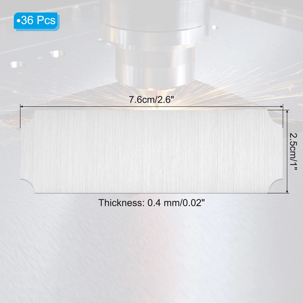 Document Our engraved nameplates are perfect for mounting on plaques, picture frames, sweaters, trophies, bags, display boxes, flag cases, and anything else.SpecificationMaterial: Stainless SteelColor: Silver ToneSize: 7.6 x 2.5 cm/3 x 1 Inch(L*W)Thickness: 0.4 mm/0.02 InchPacking List: 36 Pcs x Engraved NameplateAdvantageOur engraved nameplates are made of brushed stainless steel which is durable, stable, not easy to fade, rust, or break, and can be used for a long time. With a smooth surface, it will not scratch your skin.The right thickness makes the plate stronger and allows for deeper engraving. These elegant nameplates have a beautiful luster and a simple design. Suitable for various crafts to add brilliance.The protective film design can effectively prevent scratches. The adhesive backing design allows you to stick this nameplate anywhere without any tools and it can be firmly on the objects.InstructionPlace a metal workbench block underneath the blank stamping tags for better stamping.NOTE:1. There may be light scratches and blemishes due to shipping, but they can be polished.2. Only for laser engraving, not suitable for mechanical engraving.3. Please remove the protective film before use. 36 Pcs 3" x 1" Engraved Name Plate Picture Frame Label Art Tag, SiLver Tone Our engraved nameplates are perfect for mounting on plaques, picture frames, sweaters, trophies, bags, display boxes, flag cases, and anything else. Specification Material: Stainless Steel Color: Silver Tone Size: 7.6 x 2.5 cm/3 x 1 Inch(L*W) Thickness: 0.4 mm/0.02 Inch Packing List: 36 Pcs x Engraved Nameplate Advantage Our engraved nameplates are made of brushed stainless steel which is durable, stable, not easy to fade, rust, or break, and can be used for a long time. With a smooth surface, it will not scratch your skin. The right thickness makes the plate stronger and allows for deeper engraving. These elegant nameplates have a beautiful luster and a simple design. Suitable for various crafts to add brilliance. The protective film design can effectively prevent scratches. The adhesive backing design allows you to stick this nameplate anywhere without any tools and it can be firmly on the objects. Instruction Place a metal workbench block underneath the blank stamping tags for better stamping. NOTE: 1. There may be light scratches and blemishes due to shipping, but they can be polished. 2. Only for laser engraving, not suitable for mechanical engraving. 3. Please remove the protective film before use. Hot Item Payment 1.We accept eBay payment . 2.Payment must be received within 7 business days of auction closing. Shipping 1.We ship to your eBay or Paypal address. Please make sure your eBay and Paypal address is correct before you pay. 2.Items will be shipped within 1-3 business day when we received payment. 3.Delivery time depends on destination and other factors. Description Policy 36 Pcs 3" x 1" Engraved Name Plate Picture Frame Label Art Tag, SiLver Tone Our engraved nameplates are perfect for mounting on plaques, picture frames, sweaters, trophies, bags, display boxes, flag cases, and anything else. Specification Material: Stainless Steel Color: Silver Tone Size: 7.6 x 2.5 cm/3 x 1 Inch(L*W) Thickness: 0.4 mm/0.02 Inch Packing List: 36 Pcs x Engraved Nameplate Advantage Our engraved nameplates are made of brushed stainless steel which is durable, stable, not easy to fade, rust, or break, and can be used for a long time. With a smooth surface, it will not scratch your skin. The right thickness makes the plate stronger and allows for deeper engraving. These elegant nameplates have a beautiful luster and a simple design. Suitable for various crafts to add brilliance. The protective film design can effectively prevent scratches. The adhesive backing design allows you to stick this nameplate anywhere without any tools and it can be firmly on the objects. Instruction Place a metal workbench block underneath the blank stamping tags for better stamping. NOTE: 1. There may be light scratches and blemishes due to shipping, but they can be polished. 2. Only for laser engraving, not suitable for mechanical engraving. 3. Please remove the protective film before use. Hot Item Payment 1.We accept eBay payment . 2.Payment must be received within 7 business days of auction closing. Shipping 1.We ship to your eBay or Paypal address. Please make sure your eBay and Paypal address is correct before you pay. 2.Items will be shipped within 1-3 business day when we received payment. 3.Delivery time depends on destination and other factors.