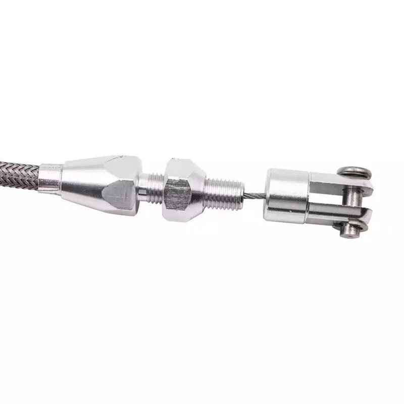 Welcome To Caiypshop Description Description New universal throttle cable Braided stainless steel Adjustable both ends 36" length Measurements are for outer braid not inner cable inner cable can be cut to suit any length Packing:1pcs Shipping 1.This product is not being marketed in all countries.Before placing orders,Please confirm this product arrives in your country. If it can't arrive at your country,just contact us,we will do special processing for you.Thanks a lot ! 2. We ship within one business day after payment is confirmed. 3. We will ship to your PayPal shipping address. All items will be dispatched from our warehouse and shipped via Singapore Post Ail-mai l and DHL,EMS,USPS . 4. Items can be combined into one shipment, but the total shipping fee will be the sum of each item's shipping & handling charge . 5. Import duties, taxes and charges are not included in the item price or shipping charges. These charges are the buyer's responsibility. Please check with your country's customs office to determine what these additional costs will be prior to bidding/buying. Payment Policy 1. Only acceptable payment method is PayPal . 2. Unpaid dispute will automatically open when item is not paid within 7 business days. Return Policy 1. We are committed to give you the best customer service possible. If for any reason you are dissatisfied with a purchase, please contact us and we'll assist you with a prompt solution. We'd like to settle any problem in a friendly manner. 2. We want to make sure you are happy with our item. If for any reason you wish to return the item, contact us within 14 days from the delivery date and we will give you a full refund or exchange. Only unused, undamaged and original condition item can be qualified for a return. Buyer is responsible for return shipping fee. Please contact us to get a RMA number BEFORE sending out your return. Goods without RMA number will NOT be accepted. Please write the RMA number on the returning package. 3. We will not be liable to customer for any damages beyond the amount of money that customer has actually paid us. Feedback 1. Please contact us with any questions or concerns. We will reply to messages within 2 business days. Emails, which are received during the weekend, will be replied on Monday. If you do not received a response in expected time period from us, please check your junk or spam mail. 2. If you are happy with our item and service, please do leave us positive feedback and 5 star rate. Please DO contact us before leaving Neutral or Negative feedback. We thank you for your effort to make this sale and purchase experience a happy one!