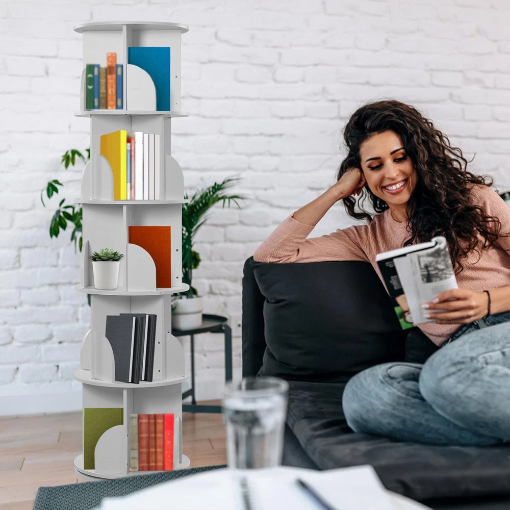 Rotating Bookshelf 360 Display 4 Tier Floor Standing Bookcase Storage Rack