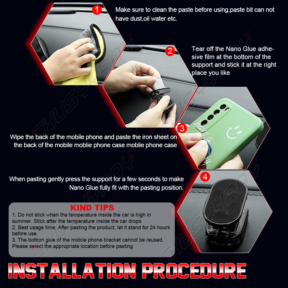 360° Rotation Magnetic Phone Holder Foldable Car Mount Stand Dashboard Universal Strong Magnetic Folding Holder: With the built-in 6 rare earth magnets and compared with the other magnets, this magnet phone holder provides stronger magnetic power. Designed to six-point pole, forming a complete enclosed magnetic field, which not only has stronger magnetism but also can shield electromagnetic. Stronger adhesive provides super stick force between the dashboard and the car phone holder, which can firmly stick to any plane in the car, never worry your phone fall-off. Easy to Fold and Store: The rotary design makes it fold easily and does not take up space. With the 360-degree rotation design, you can adjust the angle at will. Easy Install, Universal Compatibility: Just simply place the included metal plate between your phone and its case or adhere it on your phone case; it would be ready to go, which only needs several seconds. Compatible with almost all smartphones and cases. Package: 1pcs X phone Bracket holder 2pcs X Magnet On Dec 18, 2024 at 18:42:37 PST, seller added the following information: