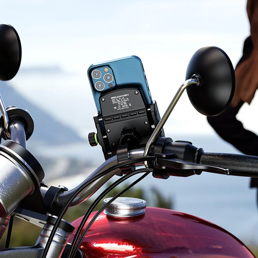 This phone holder is a game-changer for riders! The 360° rotation keeps my phone secure while allowing easy access to navigation and music. The wireless USB-C fast charging is super convenient—no more tangled cables. Sturdy grip fits my phone perfectly, even on bumpy roads. A must-have for motorcycle commuters who rely on their phones!