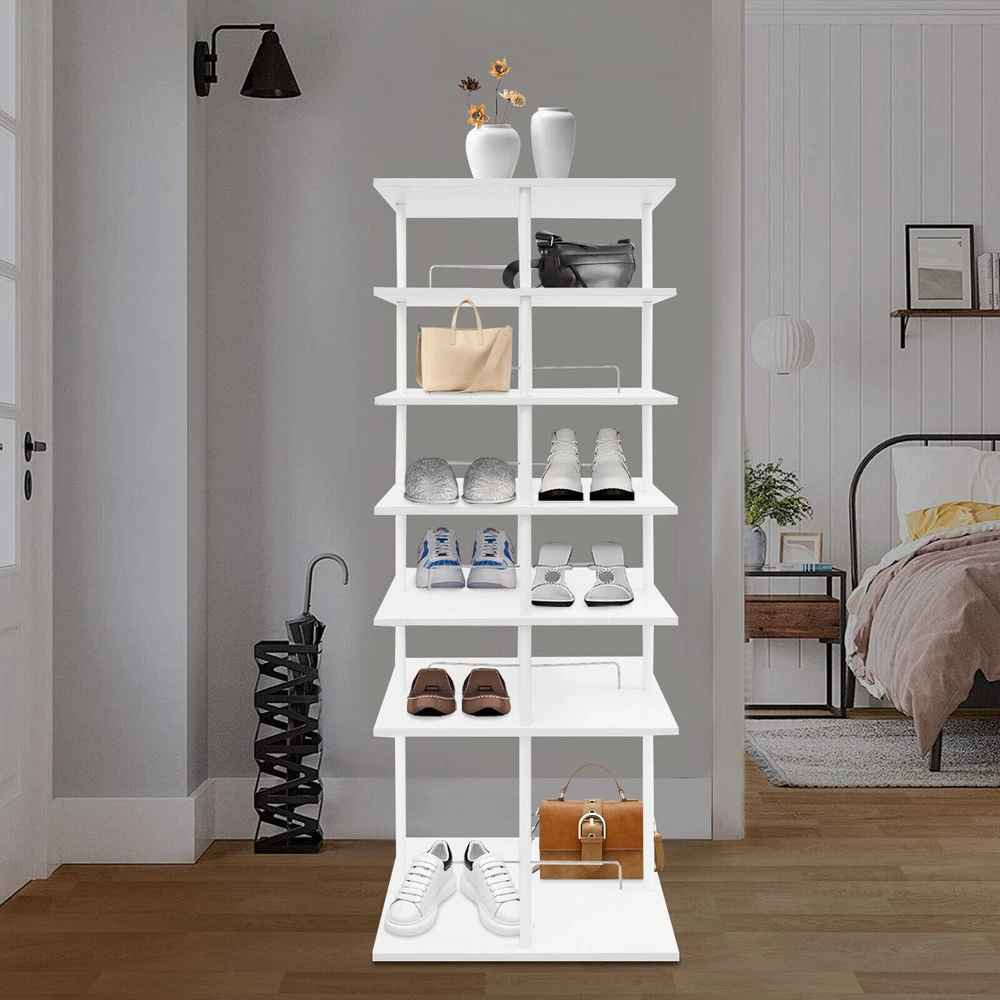 6-Tier Shoe Storage Rack 360° Rotating Shoes Shelf Organizer Shoe Display Rack Welcom to yanqiuwangluo66 A good shoe rack is not only a thoughtful steward of your shoes, but also an artistic accent to your home life. Our shoe storage rack is designed to hold shoes, hats or other items in an organized manner. It is made of high-class paintless board and metal with spray coating and baking paint processes, which is not only beautiful but also can be used for a long time. It can help you organize various kinds of shoes and solve storage problems in small homes. Key Features Build to Last: It is made of high-class paintless board and metal with spray coating and baking paint processes, which makes it wear-resistant, environmentally friendly, and not easy to deform, so you can use it for years and years. Large Capacity: The 6-tier design, each tier can accommodate 4 pairs of regular shoes(for reference), makes this product spacious enough for a family's shoe storage needs. You can also place small potted plants, handbags, umbrellas, etc.(not included) on the top tier. Strong Load-bearing Capacity: The square base and the solid connection between the parts allow this product to hold up to 42.99 lbs, so you can use it to store shoes or bags (not included) with confidence. Display Assistant: With it, you can neatly arrange different types of shoes. The 8.26-inch and 17.32-inch tier spacing accommodates different heights of shoes such as trainers and tall boots. In addition, the bottom of this shoe rack can be rotated 360° for easy selection, access, and storage of shoes or other items. Thoughtful Design: The open design allows you to see your shoes at a glance for easy access while still allowing for effective ventilation. Elegant Appearance: The simple white color finish creates a touch of elegance and casualness. It blends well with a variety of interior styles, bringing functionality and aesthetics to your space. Space Saving: It utilizes vertical space wisely and has a small footprint(22.44*22.44 inches), which won't make the room congested. Simple Cleaning: Thanks to its smooth surface and simple structure, you can easily clean it with a soft rag (not included). Ideal Gift : This quality and practical product is a nice housewarming gift for your family and friends. Buy with Confidence: We stand behind all our guests and look forward to assisting you with your purchase. It is our pleasure to answer your confusion and questions. The end of the story between us is not "we sell and you buy". Details Stable Base: The square base measuring 22.44*22.44 inches and with non-slip feet can effectively stabilize the product and prevent it from shaking. Center Crossbars: They can be good for dividing up placed items and making them neater. Smooth Edges: The rounded and smooth edges not only add to the aesthetics of the product but also improve the safety of use. Application It can be used in homes, stores, clothing stores, hotels, gift stores, or factory warehouses to hold various styles of shoes, hats, handbags, and so on. Specifications Color: White Material: Paintless Board, Metal Process: Spray Coating, Baking Paint Style: Modern Shape: Rectangular Assembly Required: Yes Mount Type: Floor Mount Feature: 360° Rotatable Product Care Instructions: Wipe with a Soft Cloth Number of Tiers: 6 Number of Shoes Applicable Each Tier: 4 Pairs(For Reference) Total Load-bearing Capacity: About 19.5kg/42.99lbs Gross Weight: 19kg/41.89lbs Net Weight: 18.05kg/39.79lbs Tier Spacing: 21cm/8.26in, 44cm/17.32in Product Size: 57*57*155cm/22.44*22.44*61.02in Package Size: 60*60*24cm/23.62*23.62*9.45in Package Included 1* Shoe Storage Rack All Accessories for Assembly Notes Please confirm the product size before purchasing. Please note that this product does not include display items such as shoes. Please note that the number of shoes that can be stored will vary depending on the size and height of the shoes. Please allow the slight color difference caused by the shooting light and 1-3cm error due to manual measurement, and make sure you do not mind before you order. Payment Delivery details Terms of sales About us Contact us Payment We accept ebay payment 。 Fees such as import duties, taxes are not included in the item price or shipping costs. These charges are the buyer's responsibility. Delivery details Shipping: 2-9 working days to: USA Terms of sales We maintain high standards of excellence and strive for hundred percent customer satisfaction. Feedback is very important to us. We hope that you contact us immediately before you give neutral or negative feedback, so that we can address your concerns. It is impossible to address issues if we do not know about them! About us Your satis faction is our ultimate goal. We work hard to earn your trust and future business. Our certified technicians have tested each item before shipping. The unit comes with 1 year limited warranty on all manufacturing defects. a) If you receive a defective item, you may return it or ask for a discount. Please contact us within 14 days after you receive the package. b) What you returned must be intact and in its original packaging as re? u. Customer is responsible for shipping costs of the returned item. c) We will cover the cost of shipping back t with the shipping rate indicated in the registration page. We will send you a new unit or refund the full payment you paid. Thank you. Contact us Business Hour Business Hour: Monday To Friday: 8:30 AM to 5:00 PM (Beijing China time) Due to time zones, our reply to your questions may not be immediately. But within above working time, we will reply your email within 24 hours. If it's non-workdays, please kindly be patient and wait till Monday. Please contact us with ebay message. Please feel free to contact us if you have any questions. Monday To Friday: 8:30 AM to 5:00 PM (Beijing China time) Due to time zones, our reply to your questions may not be immediately. But within above working time, we wi