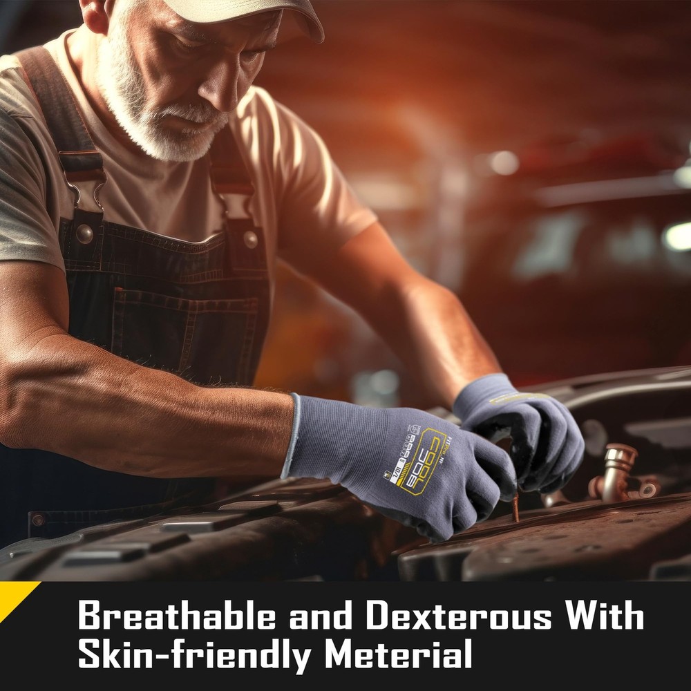 These gloves are a game-changer for light-duty work! The stretchy nylon-spandex blend makes them super comfortable and breathable, while the micro-foam nitrile coating gives an unbeatable grip—even in oily or wet conditions. The dotted palm and fingers add extra traction, making tool handling secure and easy. Durable yet flexible, they offer great protection without sacrificing dexterity. Perfect for small to x-large hands, and the 3-pair pack ensures you always have a backup. Highly recommend for anyone needing reliable, non-slip work gloves!