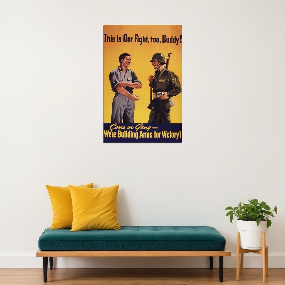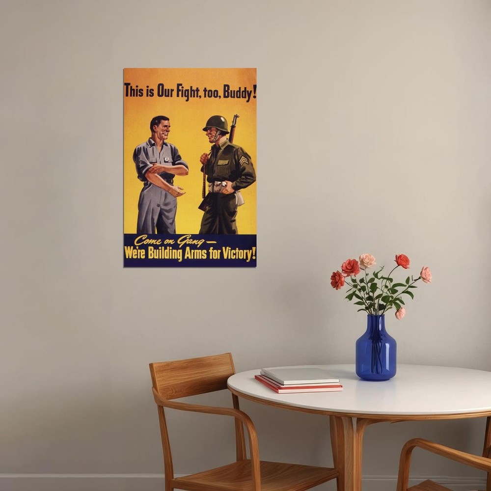 365069 Our Fight Too Buddy Vintage World War II Art Decor Print Poster Brand new stunning art premium print poster, great as a gift, souvenir, home decor or for collection! Size available: LARGE - 24x36 inches / 60x90 cm REGULAR - 18x24 inches / 45x60 cm SMALL - 12x16 inches / 30x40 cm Poster comes with a SINGLE-SIDE GLOSSY LAMINATION for FREE! Exactly fits standard size poster frames - 36x24, 24x18, 16x12 in.