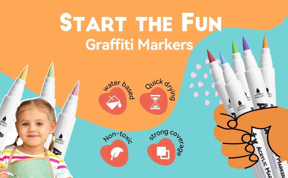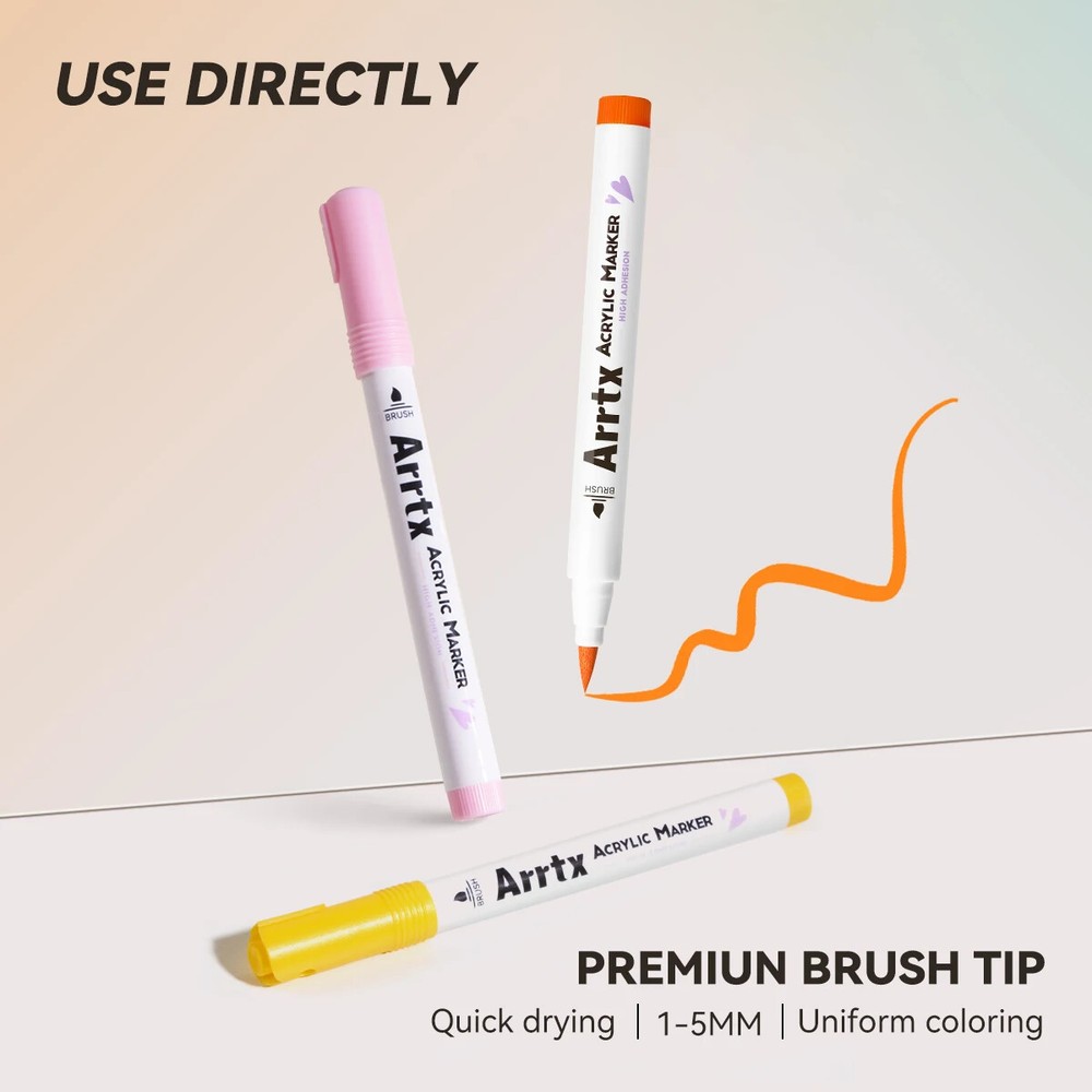 Arrtx 36D Color Acrylic Paint Pens Set 36 Vibrant Colors Acrylic Paint Pens - This set contains one color from 30A (35), contains 10 colors from 30B (00/03/17/18/28/38/53/56/61/98), extra increasing 25 new colors added. This marker set provides more new color shades for creativity. Please note: When you open the package for the first time, the order of placing the acrylic markers is the same as the order of the color card stickers, just stick them in order. Quick Dry and Waterproof - The highly pigmented paint is high covering, water-resistant, and abrasion proof allowing the application to any surface. Arrtx acrylic paint pens are water-based ink. These paint markers flow without flooding or jamming, it's permanent when dry. Note: Please tighten the cap and put pens horizontally if you don't use them. Work Well on Diverse Surface-Arrtx acrylic markers set provides water-based smooth ink and excellent coverage for a variety of surfaces, works for paper, cardstock, metal, rock painting, wood, plastic, canvas, fabric, stone, Easter eggs, easter decoration, metal, Christmas ornament, Halloween pumpkin painting, calligraphy, scrapbook, brush lettering, Christmas card, birthday gifts, greeting card, or any DIY crafts projects and more. Let's express imagination! Easy to Apply, No Pressing Down,No Shaking - With new design, these pens are very easy to apply and no need to shake and press for tips while using, you only need to open the cap to use pen.Round pen body made it comfortable to grip. Safe and Non-toxic - Arrtx drawing markers set adopts water-based environmental protection pigment ink, which is non-toxic, tasteless, waterproof, and high temperature resistant. With high-quality certificated ink makes these painting pens safe and suitable for both kids and adults for all kinds of DIY paintings. Ideal Gift - Arrtx markers are packaged in a unique two-tier design box to keep your pen clean and well organized. Non-Toxic & Safe, good gift for kids, students, artists, and adults at Christmas, Halloween, Easter Day, Thanksgiving, mothers day, and any other occasions.