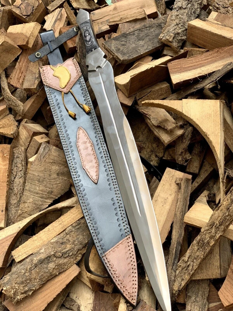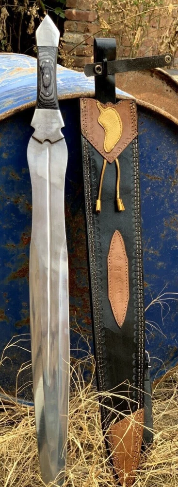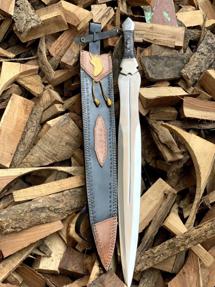 TIP : DOWNLOAD MAIN PICTURE AND COMPARE PRICE USING GOOGLE LENS. THEN DECIDE WHERE TO BUY KNIFE. WE ARE OFFERING LOWEST PRICE (TOTAL PRICE+ SHIPPING) IN MARKET. ALSO FOLLOW STORE FOR MORE KNIVES. Specifications Overall Length: 35" Inches Blade Length 27" Inches Blade Material: High carbon steel, High Polished Blade Thickness: 4mm Handle Length: 8 Inches Features: Tang: Full Length Steel Tang Sharpness with Edge, Durable All Metal Handle: steel bolster with black wood Sheath: Black as shown in pics - Package Includes: - 1 x TROJAN Legend Greek Era Medieval STEEL SWORD - 1 x Leather Hanging Sheath Cover This item is hand forged! - Super Sharp Blade: Say goodbye to rusty dull knife. This high carbon steel sword has razor-sharp blade, exceptionally stringent to tackle variety of stressful tasks. Predator hunting, wood cutting, military drills, all can be done smoothly in a quick hand move - Ergonomic Handle: Exotic handle made of G10 MICARTA, designed with detail attention to offer comfortable grip and control of hand, making tough job easier. Handle looks traditional and have anti-slip benefit - Durable Quality: Premium quality Stainless Sword is tarnish proof and rust proof to serve you for years to come. A trustworthy hunting knife that ensures excellent performance in time of need, from survival to wood-cutting all can be done, do not forget about care instruction to this sword. - Safety Cover: Our survival Sword is indeed a piece of art made by skilled steelware maker. Comes with a sturdy leather sheath and snap lock to ensure safe carrying - Masterpiece Gift: it is more than a sword, a premium collectible. Designed and made by steelware experts. Solid, sharp and really appealing! Impress loved one with great taste of choice. Gift for men and to all those passionate about hunting and camping outdoors. - Note: This is not a gift for young ones as they might mishandle it. By Buying you certify that you are over the age of 18. Please check your county laws before buying our products as some countries do not allow products to go through from their custom. If custom in your county hold the item than we are not responsible for the loss of your item. #burningman#psytrance #handmade #technofamily #technolovers #technoparty #thankslarry #amelielens #electronicmusic #festivaloutfit #musicfestival #principles #festivalwear #dj #ravegirls #burningmanvibes #charlottedewitte #edm #bmusa #awakenings #edc #ravers #party #technolove #burners #playaart #photography #burnerstyle #psychedelic #borisbrejcha #tulum#burningman #blackrockcity #techno #festival #rave #industwetrust #brc #festivalfashion #tomorrowland #ibiza #burningmanart #burningmanusa #coachella #burningmanphotos #technomusic #burner #burningmanfestival #burningmanfashion #art #techhouse #solomun #blackrockdesert #carlcox #deephouse #ninakraviz #music #burningmanstyle #burnergirls #housemusic #love