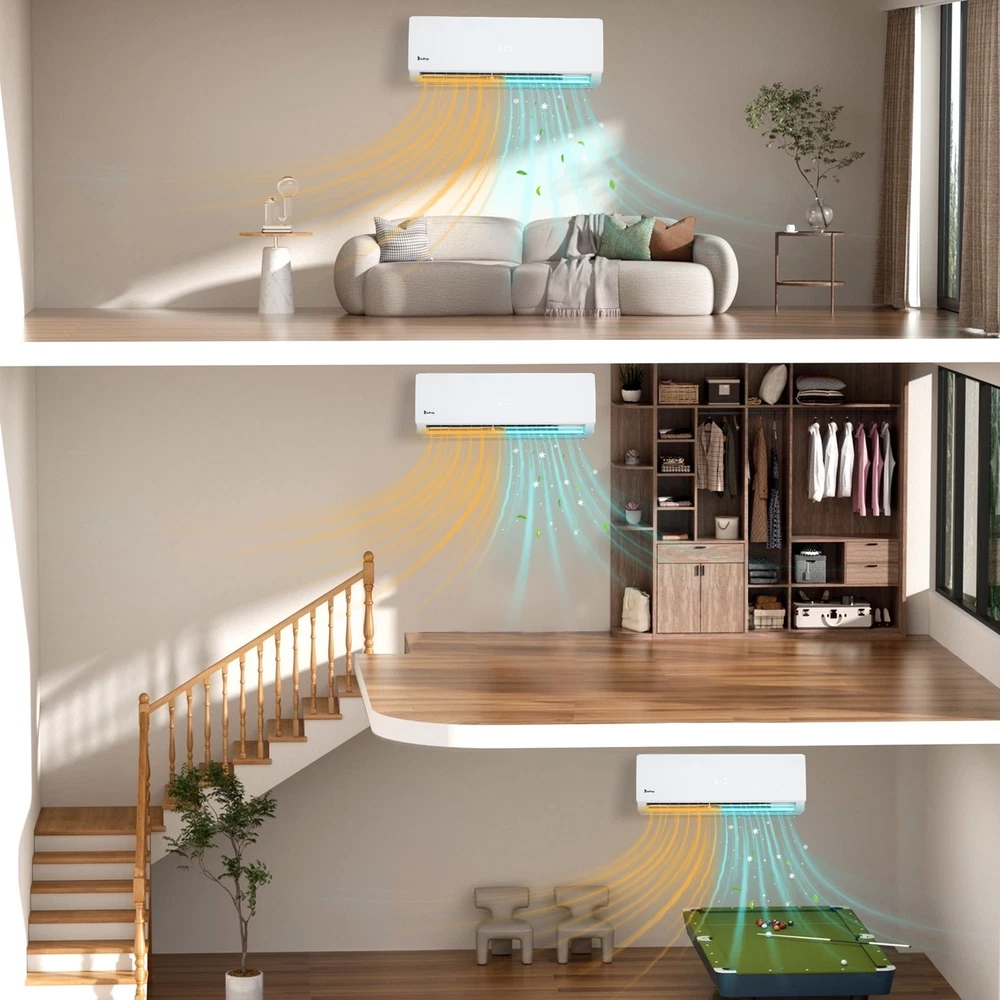 This mini split system is a game-changer! It cools and heats my space efficiently with its powerful inverter tech and high-quality copper components. The three-zone setup is perfect for different rooms, and installation was a breeze with the included kit. Super quiet and energy-saving—love how fast it adjusts the temperature! Perfect for homes, offices, or garages. Highly recommend!