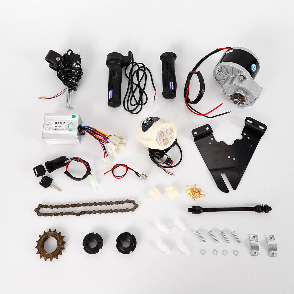 36V 250W ELECTRIC BICYCLE MOTOR KIT E-BIKE CONVERSION KIT SIMPLE DIY EBIKE USA 36V Electric Bike Conversion Kit Motor Controller For 22-28'' ordinary bicycle This product can be used to convert bicycles into electric vehicles. Name:Electric Bike Conversion Kit Specifications Fit For:22-28 inch ordinary bicycle Rated Voltage:36V Rated Power:250W Flywheel Teeth:16 Rated Speed:330rpm/min Reduction Ratio:9.78 Features: -Environmentally friendly material, durable and easy to operate. -This kit is suitable for installation on regular bicycles of 22-28 inches. -This kit is not suitable for modification in special models and variable speed models. Note -Without battery and charger!!! -Due to the manual measurement,there might be some error. Package Included 1 x Motor 1 x Controller 1 x Motor Bracket 1 x Light 1 x Chain 1 x Electric Door Lock 1 x Flywheel 1 x Extended Shaft 2 x Connector 1 x Charging Interface 2 x Speed Control Switch 2 x Handle 5 x Plastic Insert 10 x Copper Plug 2 x Steel Plate 4 x Screws 4 x Ring Payment Delivery details Terms of sales About us Contact us Payment We accept ebay payment 。 Fees such as import duties, taxes are not included in the item price or shipping costs. These charges are the buyer's responsibility. Delivery details Shipping: 2-9 working days to: USA Terms of sales We maintain high standards of excellence and strive for hundred percent customer satisfaction. Feedback is very important to us. We hope that you contact us immediately before you give neutral or negative feedback, so that we can address your concerns. It is impossible to address issues if we do not know about them! About us Your satis faction is our ultimate goal. We work hard to earn your trust and future business. Our certified technicians have tested each item before shipping. The unit comes with 1 year limited warranty on all manufacturing defects. a) If you receive a defective item, you may return it or ask for a discount. Please contact us within 14 days after you receive the package. b) What you returned must be intact and in its original packaging as re? u. Customer is responsible for shipping costs of the returned item. c) We will cover the cost of shipping back t with the shipping rate indicated in the registration page. We will send you a new unit or refund the full payment you paid. Thank you. Contact us Business Hour Business Hour: Monday To Friday: 8:30 AM to 5:00 PM (Beijing China time) Due to time zones, our reply to your questions may not be immediately. But within above working time, we will reply your email within 24 hours. If it's non-workdays, please kindly be patient and wait till Monday. Please contact us with ebay message. Please feel free to contact us if you have any questions. Monday To Friday: 8:30 AM to 5:00 PM (Beijing China time) Due to time zones, our reply to your questions may not be immediately. But within above working time, we will reply your email within 24 hours. If it's non-workdays, please kindly be patient and wait till Monday. Please contact us with ebay message. Please feel free to contact us if you have any questions. Warranty 3 Year Country/Region of Manufacture China Part Type E-Bike Conversion Kit Fit For 22-28 inch ordinary bicycle Rated Voltage 36V Rated Power 250W Flywheel Teeth 16 Rated Speed 330rpm/min Reduction Ratio 9.78 Brand Unbranded MPN Does Not Apply Manufacturer Warranty 2 Years Voltage 36 V Compatible Bike Type Universal Color Black