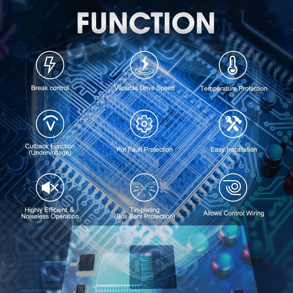 36V 350A PDS Controller 609083 for EZGO TXT 2000-2009 1206MX 73326-G02 73326-G03 Product Description FITMENT: Compatible with 2000-2009 EZGO TXT Golf Carts OEM PART NUMBER: Compatible with Curtis 73326-G02 73326G02 73326G04 73326G05 73326G06 73326G07 SPECIFICATION: We deliver controllers set to 36V / 350A, please refer to your own parts to make sure your parts are 36V / 350A FUNCTION: 1.Brake Control & Variable Drive Speed 2.Highly Efficient & Noiseless Operation 3.Temperature Protection 4.Cutback Function (Undervoltage) 5.Pot Fault Protection 6.Easy Installation 7.Tin-plating (Bus Bars Protection) 8.Allows Control Wiring Package included: 1 x Controller Note: 1.We provide clear pictures, measurements where possible. Please check as much as possible to make sure the item is the one that you need. 2.Please allow 1-10mm deviation due to manual measurement. 3.Due to light and screen difference, the item's color may be slightly different from the pictures. 4.make sure that the size and shape of the product matches your car. 5.No installation guides are included, we highly recommend to seek professional installation. Any damage during installation will not be refunded.