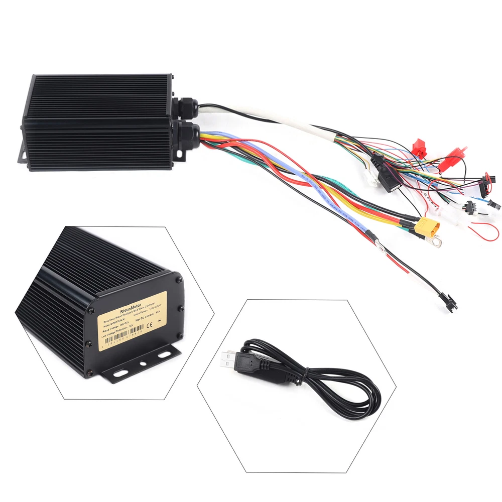 Have a nice day~ Advantage: 1.Programmable Sine Wave Controller Which Support Big Current And Smart Match With Each Motor Through Self-Learning, Works With High Efficiency, Less Noise, And Lower Energy Consumption, Which Makes Your Electric Vehicles Or Electric Motorcycles More Comfortable And Easier To Control, Give You Best Pedal Experience 2.Motor Torque Ripple Is Reduced To Minimum Through Foc, More Smooth And Comfortable 3.Universal Input Voltage Range: 36V/48V/60V/72V 4.Work With Or Without Display 5.Parameter Setting Via Mobile Phone App Or Computer 6.All Protection Make It Long Life And Safe: Over/Under Voltage, Over Current, Over Load, Over Heating, Anti-Runaway, Locked-Motor Protection 7.Multi Functions: Smart Match With Different Motor, 5-Speed Level For Throttle And Pas, Speed Limit, Reverse, Anti-Thief, Regenerative Braking, Electric Braking, Keyless Start And Etc. 8.Best Heat Sinking With Thicker Heat Sink Aluminium Plate 9.Anodized Aluminium Controller Case Against Scratch Technical Data: General Specification: 1. Rated Power: 36V 1000W/48V 1500W/ 60V 1800W/ 72V 2200W 2. Peak Power: 36V 1500W/48V 2000W/ 60V 2500W/ 72V 3000W 3. Brake: Low Voltage Brake 4. Alarm: Low Voltage Alarm 5. Rotor Position Detecting Method: Hall Sensor 6. Mobile Phone App Or Computer Software Can Communicate With The Controller To Modify Parameter 7. Size: 180x99x65mm 8. Net Weight: 1kg 9. Waterproof Grade: Ip65 Instructions For Use: Parameter Modifications And Settings Are Available Through Mobile Phone Via Usb Data Cable Advantage: Normally, it can match the brushless and gearless motors of various brands, and the data can be fine-tuned until the best efficiency is reached. Wide voltage, 36V 48V 52V 60V 72V can be done with one controller 5 gears can be adjusted through the meter, and PAS is also 5 gears Regenerative braking function. When braking, the motor will generate electricity and recoil to the battery. At the same time, it can quickly achieve the braking effect and reduce the braking burden. Speed limit 25KMH plug Reversing function Anti-theft device installation plug The function of the internal protection of the system Package: 1*Controller with controller ( Usb Data Cable ) NOTE:Hall calibration must be performed before using the product, otherwise it will not only be unusable but also easy to break Note: If you need this controller to connect to the display, the display you use must be purchased from us in order to match successfully. Other accessories such as accelerator, sensor, If the line sequence is different, the customer can change the line by yourself. Payment Delivery details Terms of sales About us Contact us Payment We accept ebay payment 。 Fees such as import duties, taxes are not included in the item price or shipping costs. These charges are the buyer's responsibility. Delivery details Shipping: 2-9 working days to: USA Terms of sales We maintain high standards of excellence and strive for hundred percent customer satisfaction. Feedback is very important to us. We hope that you contact us immediately before you give neutral or negative feedback, so that we can address your concerns. It is impossible to address issues if we do not know about them! About us Your satis faction is our ultimate goal. We work hard to earn your trust and future business. Our certified technicians have tested each item before shipping. The unit comes with 1 year limited warranty on all manufacturing defects. a) If you receive a defective item, you may return it or ask for a discount. Please contact us within 14 days after you receive the package. b) What you returned must be intact and in its original packaging as re? u. Customer is responsible for shipping costs of the returned item. c) We will cover the cost of shipping back t with the shipping rate indicated in the registration page. We will send you a new unit or refund the full payment you paid. Thank you. Contact us Business Hour Business Hour: Monday To Friday: 8:30 AM to 5:00 PM (Beijing China time) Due to time zones, our reply to your questions may not be immediately. But within above working time, we will reply your email within 24 hours. If it's non-workdays, please kindly be patient and wait till Monday. Please contact us with ebay message. Please feel free to contact us if you have any questions. Monday To Friday: 8:30 AM to 5:00 PM (Beijing China time) Due to time zones, our reply to your questions may not be immediately. But within above working time, we will reply your email within 24 hours. If it's non-workdays, please kindly be patient and wait till Monday. Please contact us with ebay message. Please feel free to contact us if you have any questions.