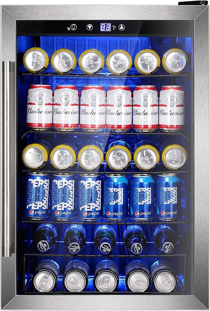 [Ensure A Satisfying Wine Tasting Experience]: This 37 bottle wine refrigerator is designed for ultimate performance! The precise temperature control button allows you to select the optimal temperature from 32℉ to 61 ℉ as per the requirements of your wines and your taste. Keep your white, sparkling and red wines at ideal aging and serving temperature. [Excellent Cooling and Ideal Humidity Level]: Our wine refrigerator with glass door is equipped with a high-performance compressor that provides constant and even cooling. The glass door ensures airtight sealing to keep cold air inside and help to keep wine from damaging vibrations and prevent bottle corks from drying out. [Freestanding Wine Cooler with Door Handle]: Provide easy access to wine and beverages without taking up much space. A stylish addition in your man cave, basement, game room, home bar garage, or any other space where you like to relax and enjoy a cold drink. [User Friendly Wine Fridge]: Our wine fridge features a reversible door design. The door can be opened from either the right or left side of the fridge which best suits your space. The adjustable chrome racks help to ensure flexible storage and the LED interior lighting makes it easy to find what your are looking for. [Versatile Beverage Storage]: Whether you are preparing for a party or you want to enjoy fresh drinks anytime, the 4.5 cu.ft beverage refrigerator can fit up to 145 standard cans! Fresh, cool beverage anytime! Keep your favorite drinks at the ideal temperature with the beverage cooler! Whether you're hosting a gathering or just relaxing at home, this compact cooler ensures your beverages are always refreshingly cool. Its efficient cooling system maintains a consistent temperature, so you can enjoy your drinks just the way you like them.