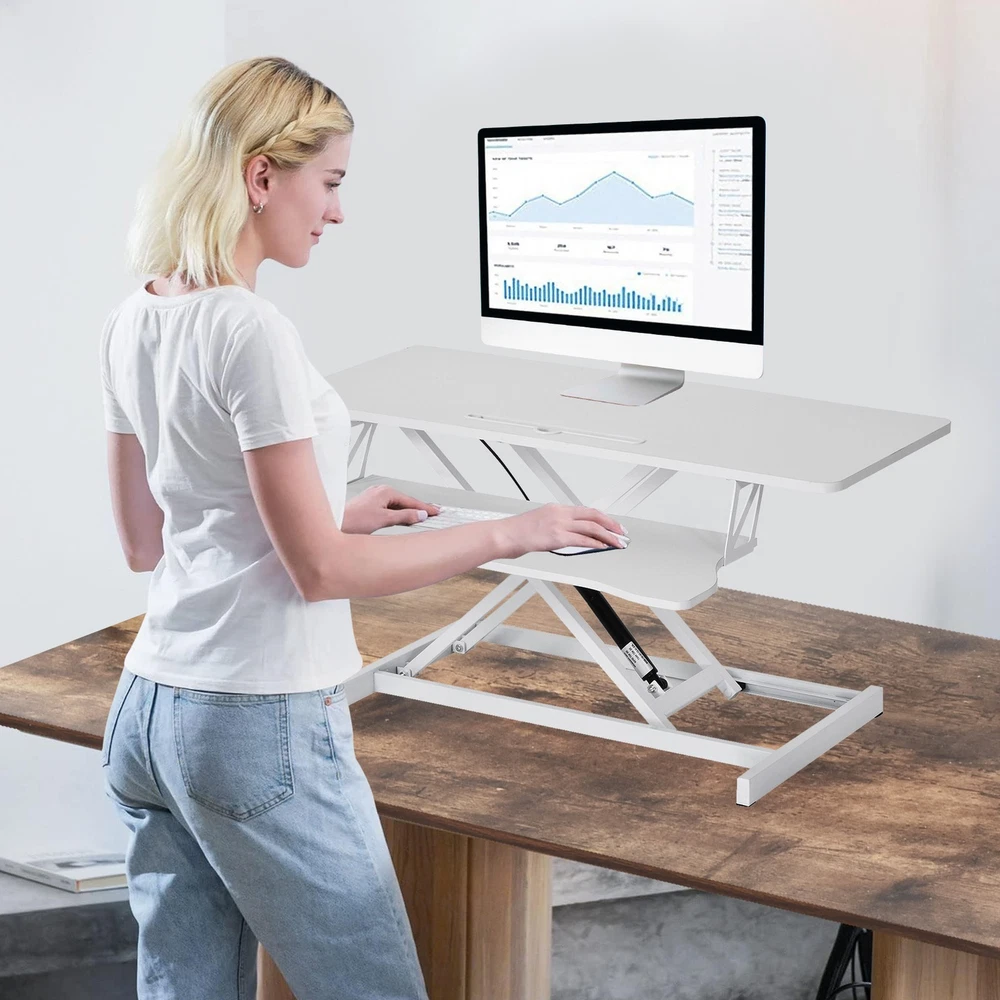If you are interested in the product, pls send the zip code to us , then we will give you the best price !! Bullet Points: Simple Use: Equipped with advanced pneumatic lifting mechanism, our standing desk converter assures the stable operating of the desktop at any height. One-touch lifting enables easy and quick adjustment with a smooth hover function, ensuring optimal productivity High Capacity Room: Modernize your work with an extra-large desktop that provides ample storage space. Our standing desk converter features a double-layer surfaces, measuring 94*40cm, capable of holding two monitors and all your must-have business accessories. Plus, enjoy a long lasting design that enhances overall productivity Strong Adaptability: Maximize your productivity with a standing desk converter that adapts to your needs. Whether you prefer to sit or stand, this converter accommodates users between 1.5 and 1.9 meters tall, with a lifting range of 15cm to 48cm. Find the perfect height for your work and enjoy all-day comfort Easy Installation: Achieve stability and reliability even during movement with the Standing Desk Converter. Enjoy convenient adjustment of position or storage according to your needs, easy disassembly and assembly, and flexible movement that doesn't require any professional tools Wide Application Scope: The health and comfort of users is our top priority. This standing desk converter is suitable for home and business use, efficiently reducing health problems caused by prolonged sitting. It provides a comfortable and ergonomic work, improving wellness and productivity Elevate your work experience with the stable Desk Riser for Standing. Say goodbye to cluttered office areas and easily adjust your position to sit or stand. Our riser is designed to fit your needs and is widely applicable to any workplace. Organize your work area conveniently with the Desk Riser for Standing. Specification: Product size: Desktop size: about 94x40cm/37.01x15.75 inches Lifting height: 15-48cm/5.91-18.9 inches Color: black/white Maximum load: about 17 kg Lifting method: Pneumatic Spring drive Desktop thickness: about 1.5cm/0.59 inches Number of layers: double layer Packing List: Desktop board *1 Keyboard board *1 Screws *10 Octagonal *1 Linking pieces *2 Gaskets *5 Stand *1 Shipping Policy 1. We ship to your eBay adress. Each package will be shipped by Royal mail without tracking number. 2. Please check your shipping address carefully before checkout, it can't be changed if order completed. 3. Ship within 1 business day once payment completed. Orders placed on weekend will be shipped within 2 days. Seriously promise: Refund or resend will be offered if item still not arrive in 8 business days. Just send us an email ,we will give you a satisfied solution as soon as possible. Payment 1.We accept PayPal only. 2.NOTE: Payment should be sent within 4 (FOUR) days of auction closing. Or unpaid dispute will be filed for closing auction. Please contact us if you have any questions of payment procedures Returns Policy 1. Customer satisfaction is our top goal. We believe our items are so outstanding. All products are quality checked. They are new and in good condition when shipped to our customers. We are convinced you will be happy with your Purchase. 2. If product is defective or damage upon arrival, or wrong product shipped, please contact us immediately. Returns accepted within 30 days of delivery date and item must be in original new condition, not worn or altered in any way with attached tags & wrap. Otherwise deal is final. Return shipping must be paid by buyer. 3. Please contact us first if you have any problems/questions/concerns. We will be happy to resolve any issues you may have in a cordial and friendly manner. Work Time Our working time: Monday- Saturday 9:00A.M-12:00A.M 13:30P.M-6:00P.M Feedback You will receive our positive feedback as soon as you pay for your item. Your better comments will be an encouragement for us to offer the better quality and the better service in future. If you are not satisfied with them, please contact us first via Ask a Question or via Contact Seller. Your messages will be answered within 1-2 business day. We shall try our best to solve your problem to your satisfaction.