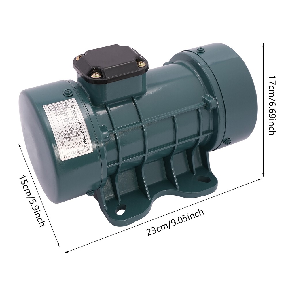 Vibration Motor Industrial Concrete Intensive Vibrator Motor 370W 110V 2840rpm Description Our vibration motor is a high-performance vibration drive unit designed for industrial applications. It combines leading-edge vibration technology with precision engineering to provide you with unrivaled vibration force and stability, ensuring that your equipment performs well in a variety of operating environments. Key Features Made to Last: The product is made of high-quality aluminum alloy and adopts forging technology, featuring high strength, wear resistance , and excellent insulating properties to ensure a long service life. Good Performance: It consists of two rotor ends of single-phase and three-phase asynchronous motors, which are fitted with eccentric blocks corresponding to the performance of the motor to ensure its excellent performance. Strong Power: The 370W power and speed up to 2840rpm give it a powerful vibratory force(330.69lbs) that makes it well suited for a wide range of industrial and commercial applications. High Safety: The IP44 rating, copper core coil, 3.28ft four-core rubber power cord, and class E insulation provide safety for your use. Ready to Use: Thanks to its simple construction and detailed English manual, all you need to do is wire it up and you're ready to use. Thoughtful Design: The push-button switch provides great convenience for your operation and use. Easy to Clean: The smooth surface and simple structure allow you to easily remove dust from the surface of the motor with a towel. Good Customer Service: We aim to provide quality products and services. If you have problems, please feel free to contact us. We will reply and solve the problem for you as soon as possible. Details Long Power Cable: The 3.28 ft power cable reduces usage restrictions and further protects your safety. High Precision Rotor: It is wear-resistant and not easy to rust. Bi-directional stabilization design allows it to work at high speed for a long time without fear of vibration. Stable Base: The base with 4 holes allows you to secure it to keep it running stably. Application This product is suitable for mining, metallurgy, coal, electric power, construction, chemical industry, medical equipment, food machinery, and other industries. It can be used to the surface of concrete base or prefabricated components. It is also suitable to work as the source of vibration, and is widely used as a universal excitation source for vibrating machines such as hoppers, silos, distributors, agitators, dust collectors vibrating feeders, shakers and so on. Specification Model: ZW-1 Material: Aluminum Alloy Color: Blue Process: Forging Style: Modern Installation Required: Yes Protection Grade: IP44 Plug Type: US Standard Voltage: 110V Frequency: 50Hz Current: 1.2A Power: 370W Vibration Frequency: 2840 rpm Exciting Force: 150kg/330.69lbs Insulation Level: E Power Cable Length: 1m/ 3.28ft Product Size: 23x15x17cm/9.05x5.9x6.69in Package Size: 23x15x17cm/9.05x5.9x6.69in Gross Weight: 7kg/15.43lbs Net Weight: 6.4kg/14.11lbs Package Included 1* Vibration Motor 1* English Manual Notes Please read the operating manual completely before use. And pay particular attention to the safety instructions included. The insulation condition of the motor should be kept good at all times. If the motor is transported over a long distance or left unused for a long period of time, the insulation between phases of the coil and the insulation to the ground should be measured, and the resistance should not be less than 0.5 megohm (at the same time, check whether the power supply meets this standard). When installing, the screw holes of the base plate should be correctly positioned to avoid tilting the bolts. The product should not be used on dry and hard ground for a long time, so as to avoid excessive vibration and damage to the machine parts. In the process of use, please strictly abide by the safety of electricity and operating procedures. The motor should be equipped with a leakage switch(not included), please check the ground contact resistance on time. After the vibrator has been used, the external surface of the motor must be carefully cleaned to ensure that the motor operates with good heat dissipation. Please check the sealing and insulation of the motor frequently. If you find that the motor is damp, it must be dried. Please check the damage to other machine parts regularly and repair them promptly if found. In case of motor and electrical failure, it must be repaired by a full-time electrician. Please allow the slight color difference caused by the shooting light and 1-3cm error due to manual measurement, and make sure you do not mind before ordering. Payment Delivery details Terms of sales About us Contact us Payment We accept ebay payment 。 Fees such as import duties, taxes are not included in the item price or shipping costs. These charges are the buyer's responsibility. Delivery details Shipping: 2-9 working days to: USA Terms of sales We maintain high standards of excellence and strive for hundred percent customer satisfaction. Feedback is very important to us. We hope that you contact us immediately before you give neutral or negative feedback, so that we can address your concerns. It is impossible to address issues if we do not know about them! About us Your satis faction is our ultimate goal. We work hard to earn your trust and future business. Our certified technicians have tested each item before shipping. The unit comes with 1 year limited warranty on all manufacturing defects. a) If you receive a defective item, you may return it or ask for a discount. Please contact us within 14 days after you receive the package. b) What you returned must be intact and in its original packaging as re? u. Customer is responsible for shipping costs of the returned item. c) We will cover the cost of shipping back t with the shipping rate indicated in the registration page. We will send you a new unit or refund the full payment 