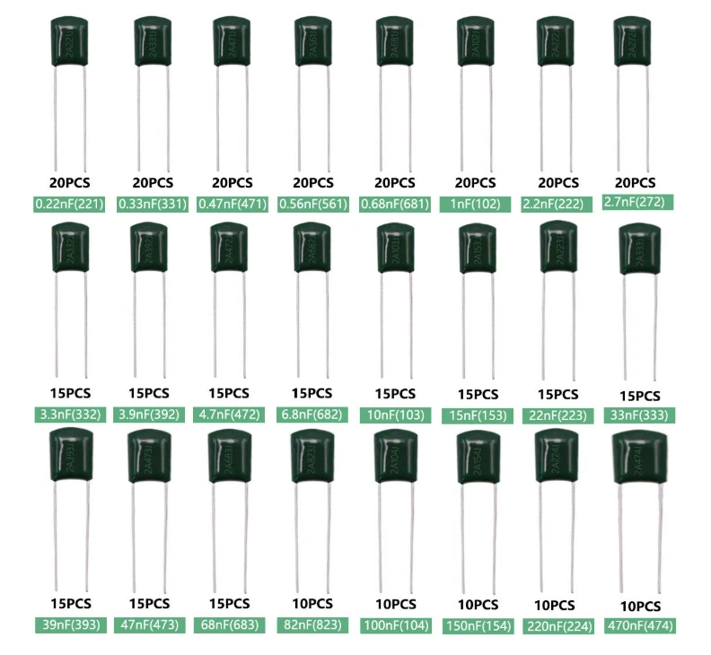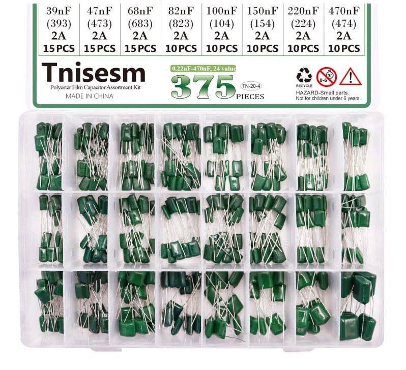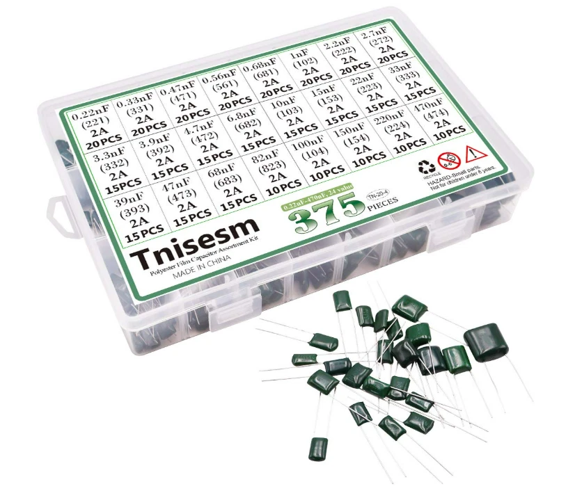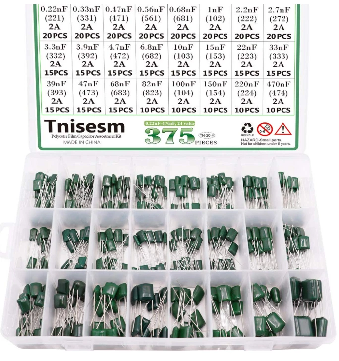 Free eBay listing template designed by dewiso.com 375 PCS 24 Value Metalized Mylar Polyester Film Capacitors Assortment Kit Tools High quality Polyester Film Capacitors Assortment Kit. Dielectric Material: Polyester ; Rated Voltage: DC 100V; Capacitance Tolerance: ±5% ; Operating Temperature: -40 ~ +85 degree Celsius. Capacitance Model: 0.22nF - 470nF (0.22nF /0.33nF /0.47nF /0.56nF/ 0.68nF / 1nF / 2.2nF / 2.7nF / 3.3nF / 3.9nF / 4.7nF / 6.8nF / 10nF / 15nF / 22nF / 33nF / 39nF / 47nF / 68nF / 82nF / 100nF / 150nF / 220nF / 470nF) Package Quantity: 375 Pcs (24 Values in total),in a transparent storage case for quick access and protection. Excellent Humidity Resistance, Miniature Size, Wide Capacitance, Reliable Performance. Wide Applications in Computers, Data Processing, Telecommunication, Industrial Control, etc. Different sizes can meet your different needs . Contact us We can be contacted at any time through eBay messages if you have any questions, comments or product requests. We will respond to you within 24 hours and do our best to help you out! We encourage our customers to contact us with any questions or concerns! We'd like to be sure you are completely satisfied with your purchase.