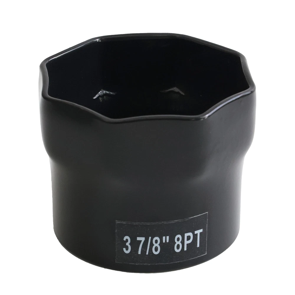 3-7/8 inch, 6-Point Truck Axle Wheel Bearing Socket, For Axle Nut Socket Set Application: Designed for installation and removal of truck wheel bearing locknuts. Material: Made from high strength, tensile steel with added durability, providing smoother operation and longer tool life. Corrosion Resistant - Industrial strength black powder coating, won't chip off or fade. Specifications: 6-point design.Designed for small size locknuts. Grips the sides of fasteners, not corners, reducing the chance of wear or rounding. Easy to Use: The wheel bearing sockets are the perfect tool to add to your locknut wrench kit,This wheel bearing tool can be used on multiple vehicles.