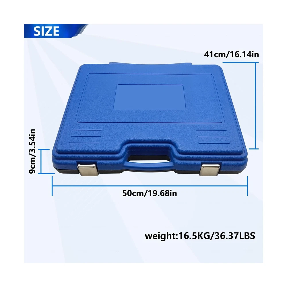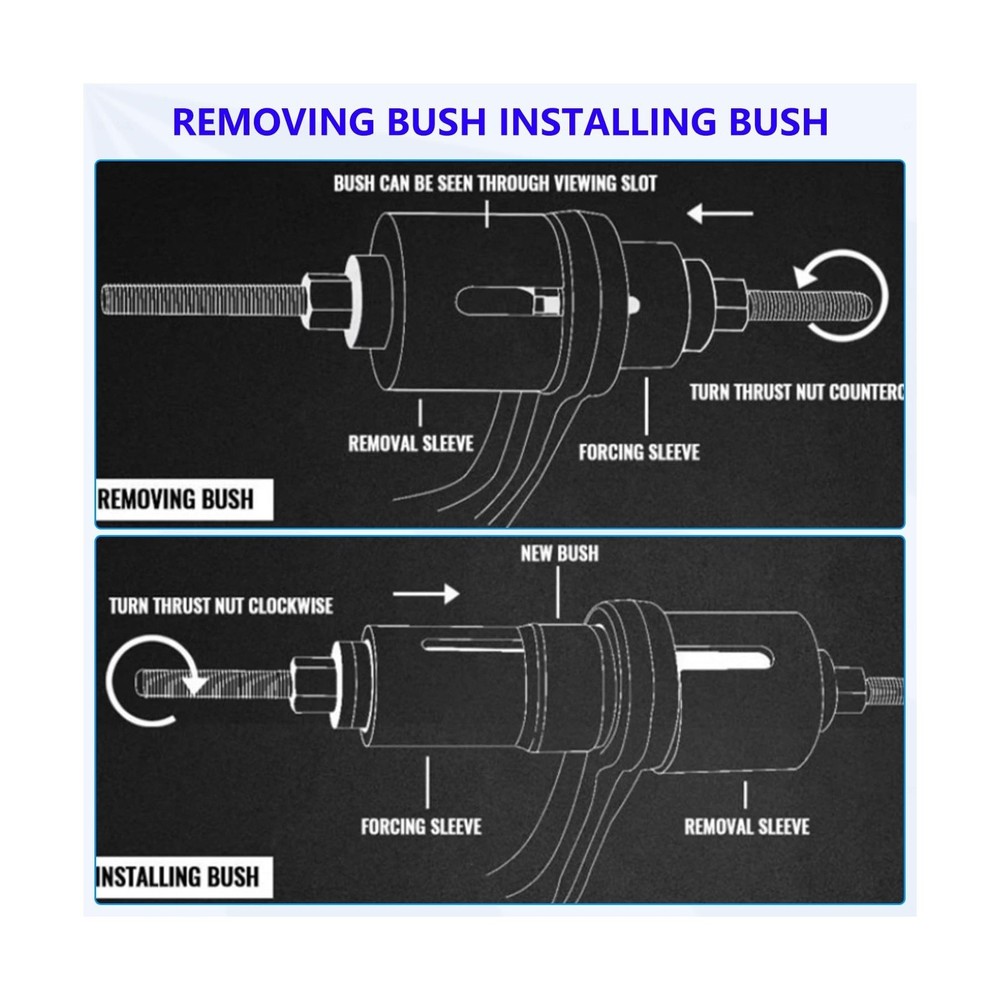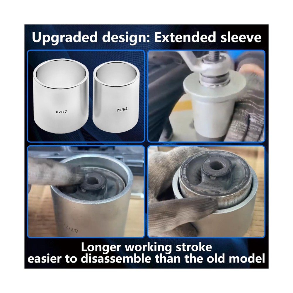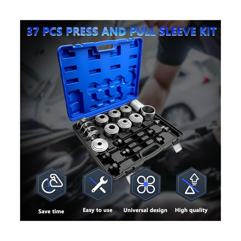 37Pcs Pull and Press Sleeve Kit, Bushing Press Kit for Most Engine Cars Vehicles, Universal Seal Bearing Bushing Removal Installation Tool Kit 4 Pulling Spindles with Nuts Case Description Features: Product Usage: Quickly and easily Removal and Installation of Bearings, Bushes, Seals and cut down the possibility of damaging the bearing or suspension housings, fits for automobiles and LCVs. Products include:28 x sleeves; 4 x pulling spindle M10, M12, M14, M16; 4x Stop plate discs adapter. Outside Diameter/Inside Diameter32/2234/2436/2638/2840/3042/3244/3446/3648/3850/40, 52/4254/4456/4658/4860/5062/5264/5466/5668/5870/6072/6274/6476/6678/6880/7082/7287/7772/62. Material:Forged by Alloy steel, Rugged and durable. Can withstand 3500N. At the same time, it has durability and corrosion resistance. Excellent Service: We are committed to providing the best professional tools and the best service for auto repair. If you have any questions, please don't hesitate to contact us. We provide 24-hour before and after-sales service. Product Details: Product Dimensions : 19.75 x 16.75 x 4.2 inches; 38 Pounds Item model number : KT6065A Date First Available : February 13, 2025 Manufacturer : KTTOOL Best Sellers Rank: #56,565 in Automotive (See Top 100 in Automotive) #19 in Bushing Tools #343 in Brake Tools #19 in Bushing Tools #343 in Brake Tools Customer Reviews: 4.2 4.2 out of 5 stars 10 ratings Delivery We Do Not Ship Outside of the Continental US. Return Policy All items qualify for returns within 30 days of receipt. Buyer is responsible for return shipping on any item that is not damaged. Feedback We take our reputation seriously, we buy and sell online, so we understand the value of trust. If you are unsatisfied with your order, please contact us and we will work with you to resolve it to your satisfaction.