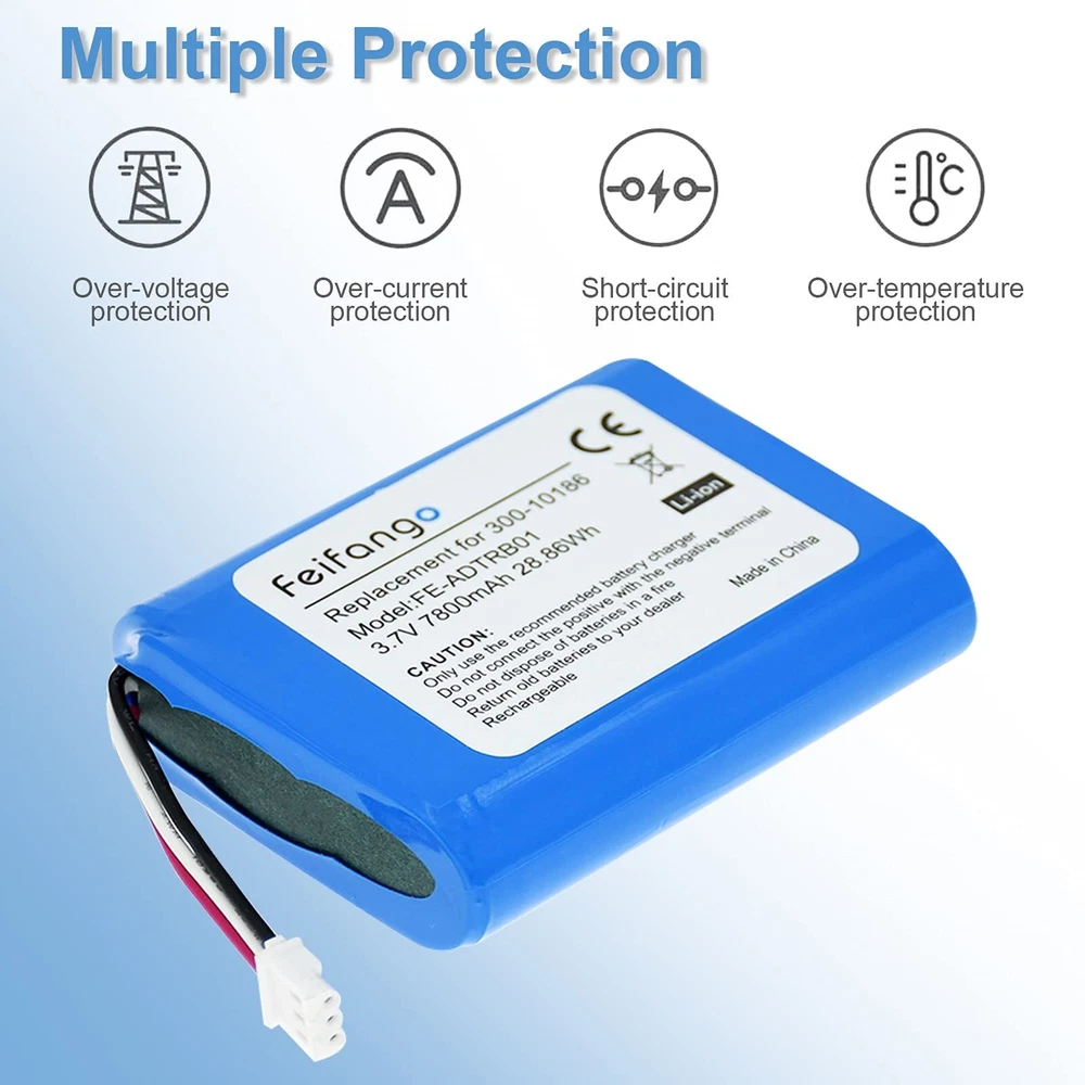 3.7V 7800mAh Li-ion Replacement Battery for 300-10186 Compatible with ADT Command Smart Security Panel Honeywell AI05-2 AIO7-1 AIO7-2 Pro 7Battery Voltage: 3.7VCapacity: 7800mAhType: Li-ionBattery Specification: 2.7 x 2.18 x 0.74 inchesPackage includes:replacement battery*1; Instruction*1➤This battery of is perfectly suitable for Honeywell AI05-2 AIO7-1 AIO7-2 Pro 7, please confirm the model before purchasing.➤Li-ion batteries have no memory effect, can be recycled more than 500 times, have a longer service life. The self-discharge is low even if stored for a long time, effectively reducing the natural loss of power.➤High-quality circuit chips and batteries have passed international system certification, good high temperature resistance, making it safer to use with you.➤Warm Noticed: When using a new lithium battery for the first time, you should use up the virtual power before charging it, which is conducive to the battery life. Compatible Models: Compatible with Honeywell AI05-2 AIO7-1 AIO7-2 Pro 7, same as original battery, perfect replace ADT Command Smart Security Panel batteries. Battery Voltage: 3.7V; Capacity: 7800mAh; Li-ion. Specification: 2.7 x 2.18 x 0.74 inches Multiple Protection and 100% Safety: Built with multiple circuit protection (over-charging, over-current, over-voltage, short-circuit, high-temperature). Tested and validated by manufacturer to match specifications of OEM, fast and safe charging. Package Includes: 1*replacement battery, 1*instruction and friendly customer service.