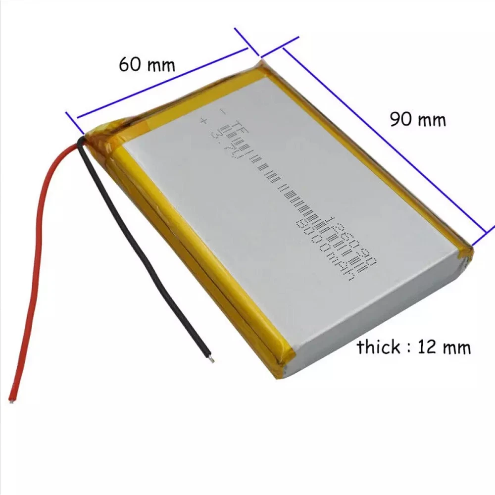 Description Description: 1. Model code : PL126090 2. Cell Size : 12 mm (thick ) ×60 mm (width ) × 90 mm ( lenght) 0.47 inch x 2.36 inch x 3.54 inch 3. Nominal Capacity : 3.7V 8000mAh 4. Built-in protection circuit PCM for prevent over charging or over discharging. 5. Fit for Remote controller,IPTV Set top box remote controller,LED lighting,Underwater lighting system,Bluetooth device,MP3/MP4 player,safety lamp,GPS,Mobile phone,E-book,Power bank,Portable DVD, Walkie talkie,Notebook,Tablet PC,PDA,Game player,Pos machine, Consumer electronics device, Medical Devices ,Flash lighting, garden lighting, Karaoke, digital Camera, Driving recorder, Recording Pen ,Headset ,DashCam ,Satnav, Navigation ,baby monitor,Navigation ,Car Camera ,Drift Camera, taillight, Bluetooth Speaker, Instrumentation ,smart Lock ,Medical device ,digital light, air purifier ,Valve Index Controller,Project Design etc . 7. Each Cell weight : 142 g 8.Connector:XH2.54 Package include : 1 pcs 3.7v 8000mah Polymer rechargeable li battery 126090 Electrical characteristics: 1. if your device still have a PCM protector board lie on motherboard of your device. it will can\'t work well. please remove off this PCM from our this li battery. so this battery can work well. 2. if your old one li battery have a PCM board on top of li battery. please instead this old pcm to our new li battery . maybe our PCM board don\'t fit your device. each device there are different requirements with PCM board. 3.Standard Charging method :0.5C (constant current)charge to 4.2V,then CV(constant voltage 4.2V)charge till charge current decline to ≤0.05C 4. Rated Capacity : The capacity means the discharge capacity of the cell, which is measured with discharge current of 0.2C with 3.0V cut-off voltage after standard charge. 5. Charging time :Standard Charging:3.0 hours(Ref.) ,Rapid charge: 2.0 hours(Ref.) 6. Max. charge current :1.0C Max. discharge current :1.0C Discharge cut-off voltage :3.0V 7. Operating temperature :Charging: -20℃~60℃ Discharging:-20℃~60℃ 8. Storage temperature : -10℃~ +45℃ 9. Cycle life: 600 cycles,Stable performance with 100% in house testing 10. Warranty: 15 Months 11. Test condition: Charge:0.5C to 4.2V Discharge:0.2C to 3.0V 70% or more of 1st cycle capacity at 0.2C discharge of Operation Self-discharge :Residual capacity >90% After the standard charging, storied the cells under the condition for 30 days, then measured the capacity with 0.2C till 3.0V 12:Temperature characteristics : -20℃: ≥65% 23℃: 100% 60℃: ≥96% Friendly Tips: 1.Due to the light and screen difference, the item's color maybe slightly different from the pictures. Please understand. 2.Please allow 1-2cm differences because of the manual measurement. Payment 1. We only accept payment through Payoneer. 2. Please make sure you have a valid account prior bidding. 3. Please pay for your item within 7 days after you order. Shipping 1. Buyer take responsibility in import / tax cost (not included in item price) 2. Pls contact with us to confirm extra cost if you need to upgrade the shipping option 3. If there's any concern about shipping, pls contact with us for further confirmation Return Policy 1. Refund or Replacement request is available within 30 days after parcel received and returning the item as the same condition as received. Please contact us to request a return authorization. Your name, auction number, and reason for return should be included in the message. 2. All items returned must contain all original packaging materials. Please repack the item carefully. Items returned will be tested and a new replacement will be shipping to buyer punctually. 3. In the event that a suitable replacement is not available then a refund will be issued. Shipping, handling and insurance fees are non-refundable. 4.If the item was found non-defective, the item will be sent back to buyer at buyer's expense. Items returned without authorization will be refused and returned to sender/buyer. 5. Buyer pay the shipping cost if the item damaged artificially, or buyer say "not like it", "size/color was different per they imaginary", etc. Contact us Please contact us via ebay message any time, all questions will be replied within 12 working hours. Customer Support Online : 9:00am - 22:00pm (GMT +8) Everyday
