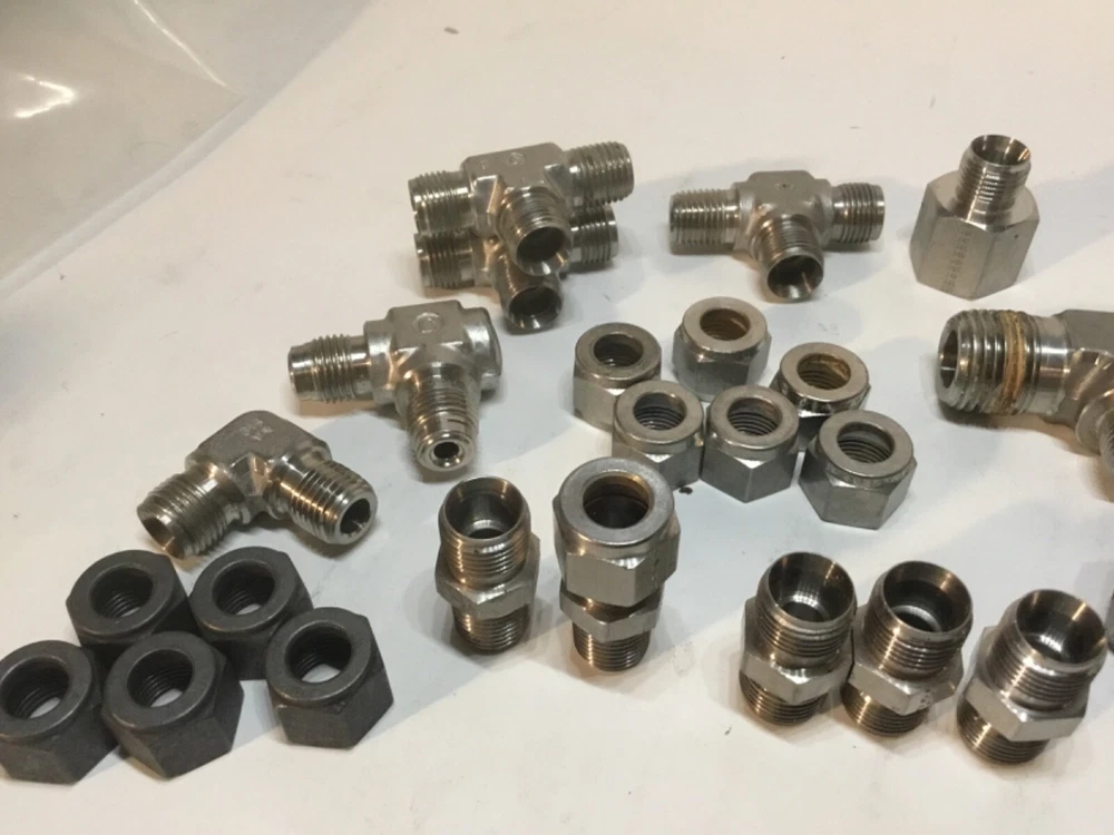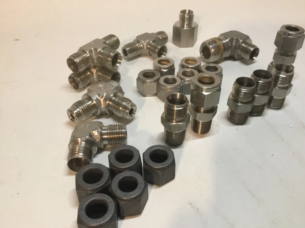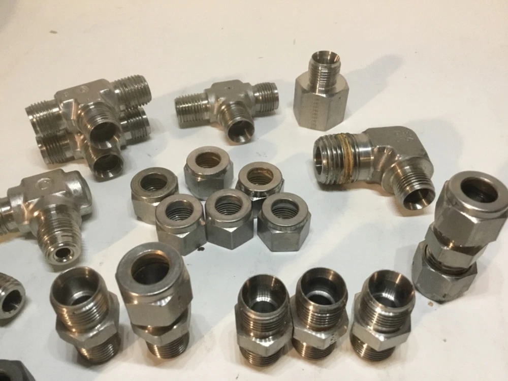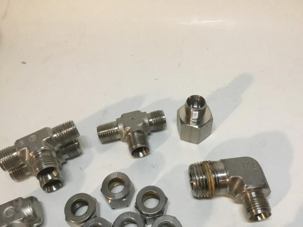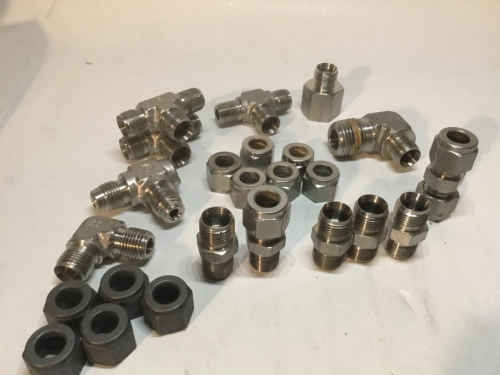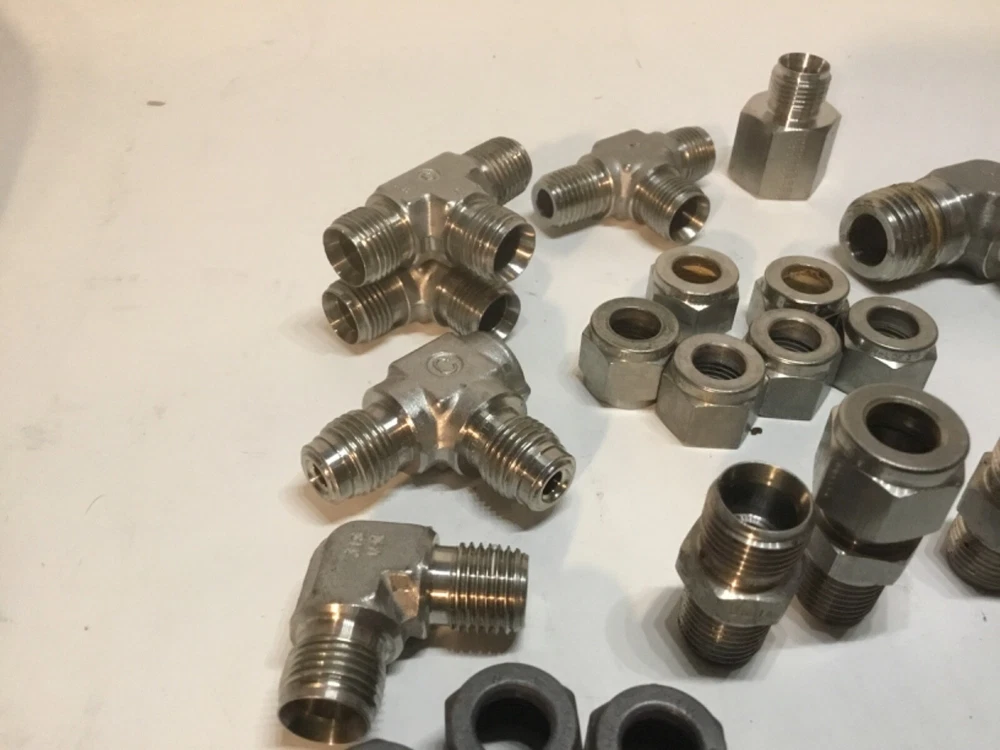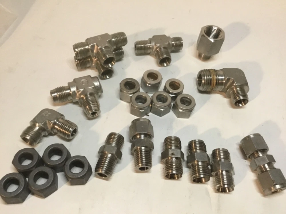No ferrules that come in this auction Parker nuts ,Crawford tees and 90s Swagelok couplers Swagelok nuts 2 3/8 tube x 1/4 male npt Ssp 90 too What u see in pics are what u get … Good cond to new cond.. These are all in very good to new cond. S&h is 8.55 within the USA please only