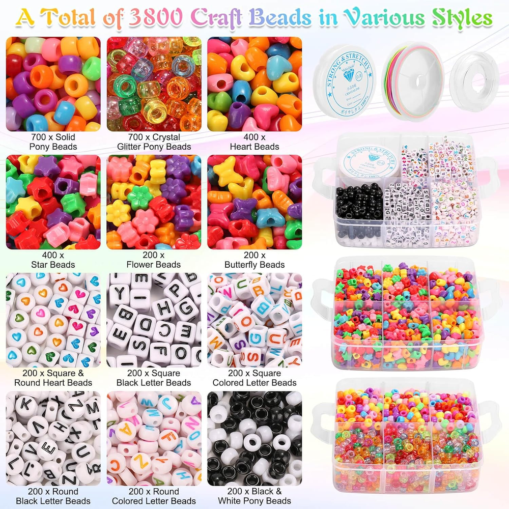 This bulk pony bead set is a crafter’s dream! With 3800 beads in assorted shapes like stars, hearts, letters, and flowers, there’s endless creativity for bracelets, hair braids, and DIY projects. The colors are vibrant, the quality is great, and the variety keeps my designs fresh. Fast shipping and excellent service make it even better—highly recommend!
