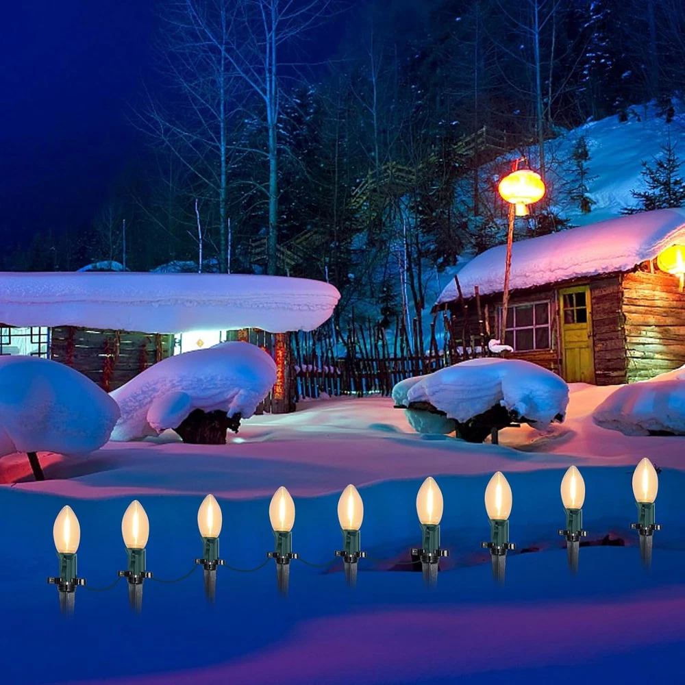 Number of Light Sources: 27 Occasion: Christmas Bulb Base: E17 UPC: 7445016712777 Size: 38FT Included Components: string lights, bulbs, inserts, high-strength plastic inserts Material Type: Plastic Light Color: 清光 Indoor/Outdoor Usage: Outdoor Power Source: Corded Electric Special Feature: Corded Theme: Christmas Control Method: App Additional Features: Corded Light Source Type: LED Package Dimensions: 9.29 x 6.77 x 5.16 inches; 1.94 Pounds Style: Modern Color: C9 LED Warm white Lights Type: Does not apply Occasion Type: Christmas Bulb Shape Size: C9 Style Number: C9 Voltage: 120 Volts Number of Items: 1 gtin13: 7445016712777 Seasons: Christmas Style Name: Modern Indoor Outdoor Usage: Outdoor Brand: Does not apply Item model number: C9 Water Resistance Level: Waterproof