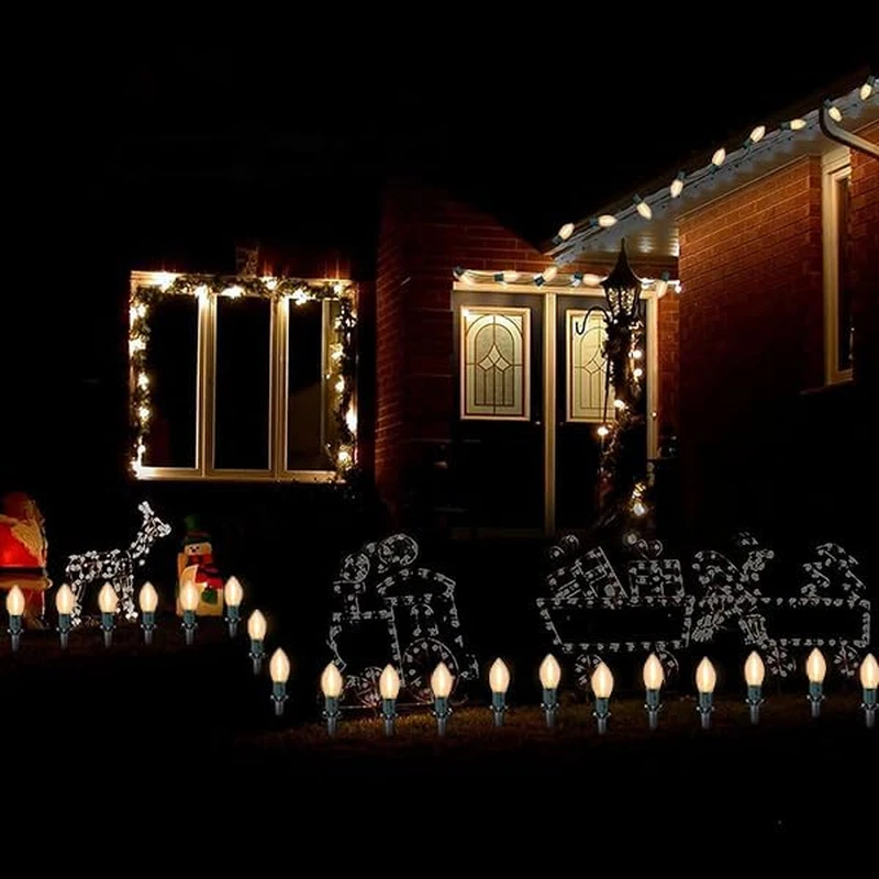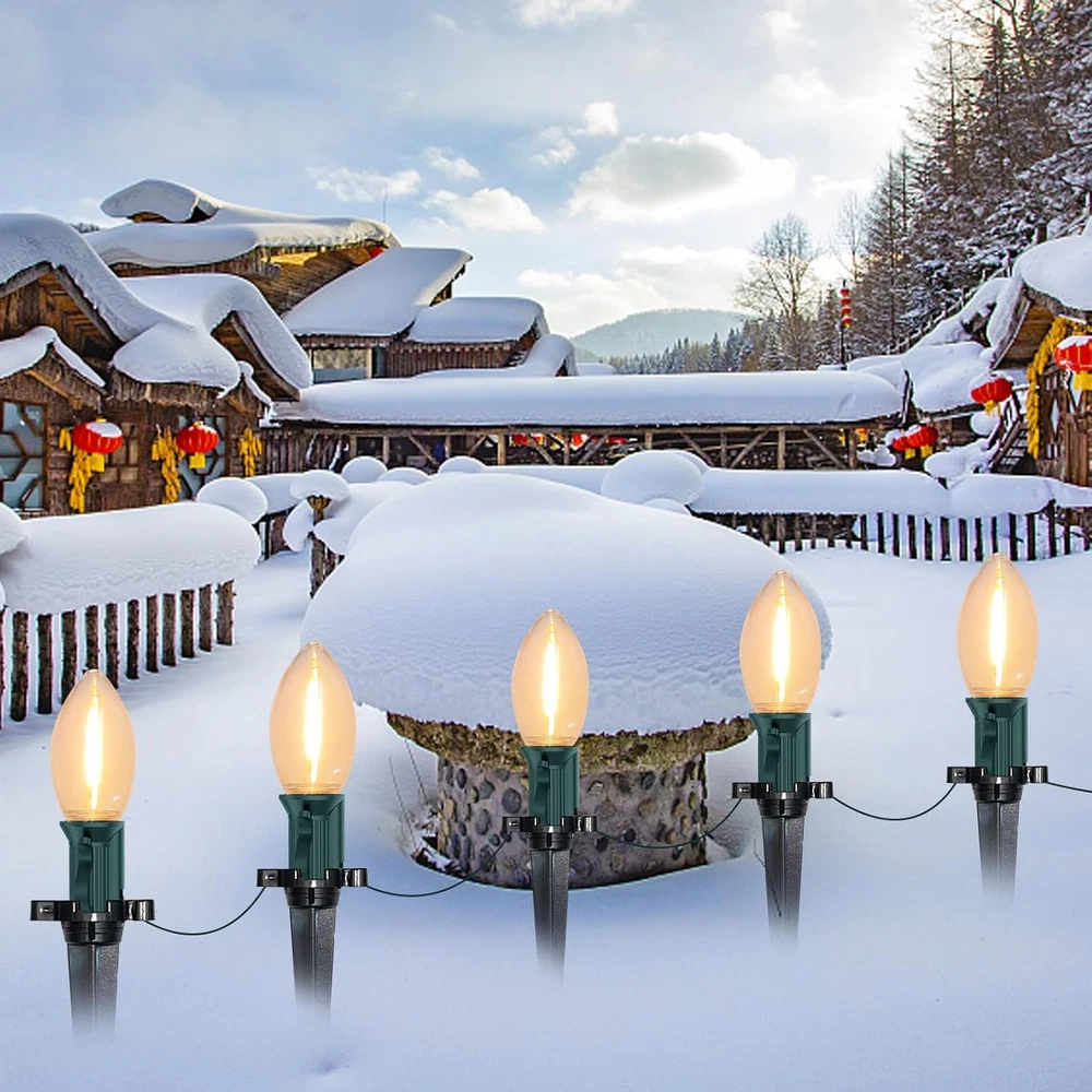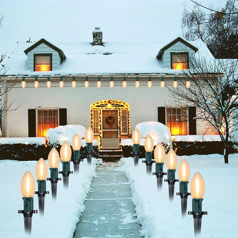 38FT Christmas String Lights C9 Outdoor Yard Decorations with Pathway Marker Sta