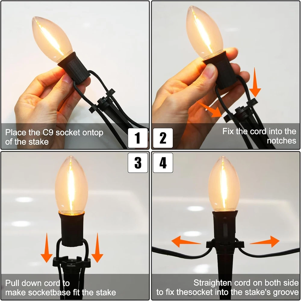 Store New Arrivals Add to Favorite View Feedback Contact 38FT Christmas String Lights C9 Outdoor Yard Decorations with Pathway Marker Stakes, E17 Base C9 Pathway Christmas Lights with 27 LED Warm White Light Bulb for Holiday Driveway Lawn Garden Decor Description Item model number C9 Light Source Type LED Style Modern Number of Items 1 Power Source Corded Electric Number of Light Sources 27 Control Method App Theme Christmas Style Number C9 Occasion Type Christmas Seasons Christmas Additional Features Corded Package Dimensions 9.29 x 6.77 x 5.16 inches; 1.94 Pounds Indoor/Outdoor Usage Outdoor Material Type Plastic Light Color 清光 Water Resistance Level Waterproof Occasion Christmas Special Feature Corded Bulb Base E17 Bulb Shape Size C9 Color C9 LED Warm white Lights Indoor Outdoor Usage Outdoor Voltage 120 Volts Included Components string lights, bulbs, inserts, high-strength plastic inserts Style Name Modern Size 38FT C9 Christmas Walkway Lights Outdoor: C9 LED string lights total length of 38FT, 25+2 led clear bulbs and 25 insert rods, E17 candle base. Each bulb 0.6W,120V. UL Certification: IP44 weatherproof, suitable for indoor and outdoor use. C9 LED Bulb are made of high quality plastic material, shatterproof; And C9 LED bulbs low voltage energy saving, the average service life of 3000 hours. Simple to use : You can flexibly drape, roll, and wrap it around any structure to create a warm lighting effect. Each bulb operates independently, so a broken bulb won't affect the others. Energy saving and durable: You can also twist the lamp into the rod to use, simple operation; Waterproof and shatterproof LED bulbs and inserts made of high-quality plastic will light up your garden, lawn, driveway or other outdoor decorations. C9 outdoor pathway lights are suitable for all weather conditions. Widely used: Vintage C9 Christmas garden lights are the best choice for Christmas decoration, gardens, courtyards, porches, corridors, holiday parties, commercial applications, outdoor. The C9 LED light string can create a cheerful, warm and romantic atmosphere. Product Description C9 Christmas Pathway Lights Outdoor C9 led christmas string lights outdoor is hanging and plugging, Hang up C9 outdoor string lights around your roofline decor or plug the C9 christmas driveway lights in lawn garden.They're weatherproof and designed to endure rain, snow, and wind, ensuring they keep shining through the holiday season. 38Ft C9 25 Warm White Christmas Pathway String Lights C9 LED Bulbs and Stakes 38FT C9 LED Christmas walkway markers string lights with C9 led garden string light bulbs and 25 stakes.The rod is durable and can be inserted flexibly Christmas Walkway Decorations Lights Vintage C9 Christmas Garden lights are the best choice for Christmas decorations, rooftops, courtyards, porches, hallways, holiday parties, commercial applications, and outdoors. Christmas Decorations Lights C9 Christmas Pathway Lights Outdoor,You can hang it on your Christmas tree and the warm white lighting effect will give your entire space a warm Christmas holiday atmosphere. C9 LED Pathway Lights Christmas lights Path marker post outdoor lights are more suitable for sidewalks, driveways, gardens, hallways, fences, backyards to transform your outdoor space and create a joyous festive atmosphere. 38Ft C9 Christmas Decorations String Lights Outdoor Product information: UL certified, weatherproof, snowproof Average 3000 per hour, long service life Plastic LED bulb, shatterproof and easy to use LED bulb design, energy saving and low pressure. C9 LED Clear Bulbs Christmas decorated outdoor walkway lights with 25 C9 clear led bulbs (if one bulb goes out does not affect the others). C9 Outdoor Pathway Lights 18 inch lead with male plug, 18 inch spacing between C9 led lights, 6 inch tail with female connector, total length 38 feets Christmas stake lawn lights. The lamp pile is made of high quality material, durable and not easy to be blown down. 38FT C9 Outdoor Christmas light string, long and durable, can be flexibly hung anywhere. LED bulb design, energy saving and low pressure. Practical & Easy to Install This outdoor decorative light is very easy to install and fix it or place it anywhere. A gorgeous lighted string lights can be relaxed to decorate your pathway, front door, garden or hanging on the tree. C9 LED Outdoor Decorations Pathway Lights IP44 Waterproof C9 LED Multicolor Light, UL certified, made of high quality material, shatterproof and weatherproof; It is the best choice for outdoor holiday decorations. C9 LED Christmas Garden light C9 LED Christmas Garden light post shows the warm white lighting effect. These bright colors will warm onlookers, creating a warm and perfect holiday atmosphere. C9 LED Bulbs Each bulb 0.6W,120V,E17 candle base,LED bulb design, energy saving and low pressure. C9 Patio String Lights C9 warm white path driveway marker lights stand out even at night, bringing a rich Christmas atmosphere to the outdoor courtyard garden porch. ABOUT US We offer the best prices around on high quality products. Our E-store includes media such as books, movies, music and games while offering electronics, toys, sporting apparel, clothing, tools, general home, garden items and more. SHIPPING We are always working hard to ensure your package arrives as soon as possible. Please understand that some factors like weather, high postal traffic, and the performance of shipping companies are outside of our control. We offer free shipping to the lower 48 states and ship within 2 business days of payment, usually sooner. We do not accept P.O. Boxes. Please provide a physical address. For shipping outside of the continental USA, we only use eBay's Global Shipping Program.The item is shipped to KY and then sent to the rest of the world. International customers are responsible for all duties and taxes. Continue to check out in order to calculate costs for shipping the item to your country. Messages regarding eBay's Global Shippi