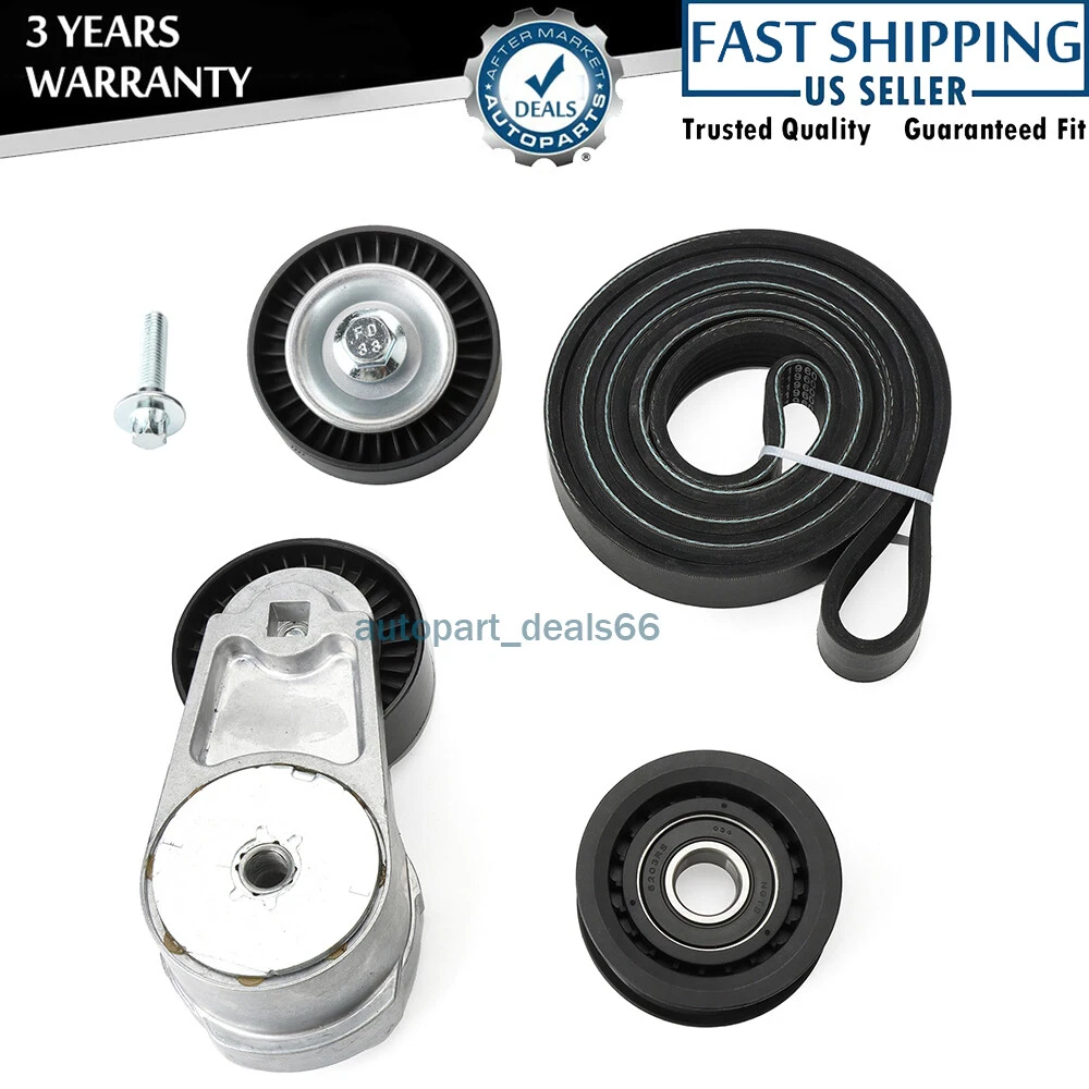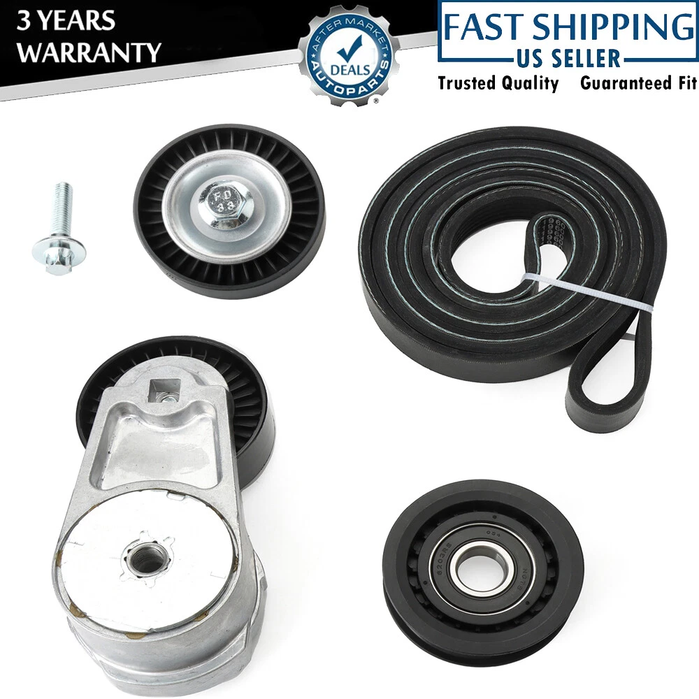 Product Description Features: Good item with high quality. Stable characteristic, high reliability. Easy to install. Direct Fit, No Modification Needed Durable & Comfortable Part Number: 5184617AD, 38082, 6PK1670 Package Included: 1PC Serpentine Belt 6PK1670 1PC Tensioner Assembly 39282 1PC Idler Pulley 38082 1PC Drive Belt Idler Fitment : For CHRYSLER 200 2011-2014 For CHRYSLER 300 2011-2019 For CHRYSLER TOWN & COUNTRY 2011-2016 For DODGE AVENGER 2011-2014 For DODGE CHALLENGER 2011-2019 For DODGE CHARGER 2011-2019 For DODGE DURANGO 2011-2019 For DODGE GRAND CARAVAN 2011-2018 For DODGE JOURNEY 2011-2018 For JEEP GRAND CHEROKEE 2011-2018 For RAM 1500 2013-2018 For RAM C/V 2012-2015 For RAM PROMASTER 1500 2014-2018 For RAM PROMASTER 2500 2014-2018 For RAM PROMASTER 3500 2014-2018 For VOLKSWAGEN ROUTAN 2011-2013 Notes: 1. Please check compatibility chart, part photos, OE part number and part description above carefully to make sure it is what you need. 2. Any questions please contact us by clicking "ask a question" at the bottom of this page or click "contact seller" in the "purchase history". Payment F or your safety and convenience, we process all payments through PayPal where all major Credit Cards are accepted (Amex, Visa, MasterCard, Discover, etc.). For "Buy It Now" listings, your PayPal payment is due at the time of checkout. For auction style listings, your PayPal payment is due within 48 hours after the end of the auction. Shipping We do our best to ship it out ASAP after receiving your order and provide tracking numbers on all orders. Please note that we can only ship to addresses verified with PayPal or your credit card. We may contact you for additional verification if needed. We cannot ship to APO or FPO addresses, and orders to Puerto Rico, Hawaii, and Alaska will incur additional shipping charges. Returns Hassle Free Returns! All our products come with a 30-Day Return Policy. If you would like to return your item and you are within 30 days of the purchase, and it is still in its original condition, you can request a return label and return the item by contacting us through eBay messaging. If there are any product defects, we offer Free Returns and will provide you with a prepaid return label. Once the item has been received and verified, a refund of the purchase price and any taxes paid will be issued through PayPal. Our return policy is void if you attempt to modify, open, unlock, root, or change the operating system of the device. Contact us 1.We will work with you to until you are satisfied.we sincerely hope that you can leave us a positive comment,If, for any reason you are not satisfied with your purchase, please contact us through "My Messages" or " Ask Seller Questions " before leaving neutral or negative feedback. 2.Please do not open cases without contacting us first. We will solve any problem till your satisfaction. Feedback 1. We greatly appreciate your Five Stars POSITIVE feedback. 2. Please Do NOT leave negative or neutral feedback without any contact. 3. It 's very important to us, Thanks a lot! 4. Any questions please feel free to contact us. 5. I believe any problem can be settled with our good communication. powered by