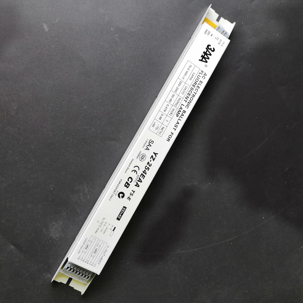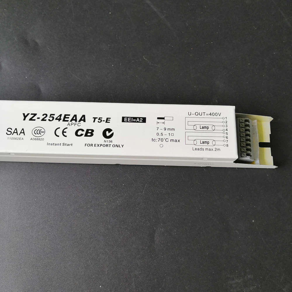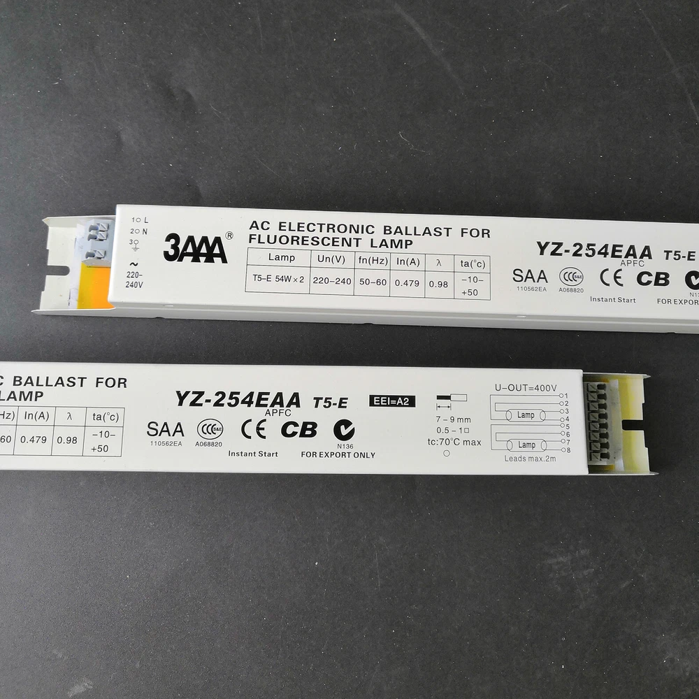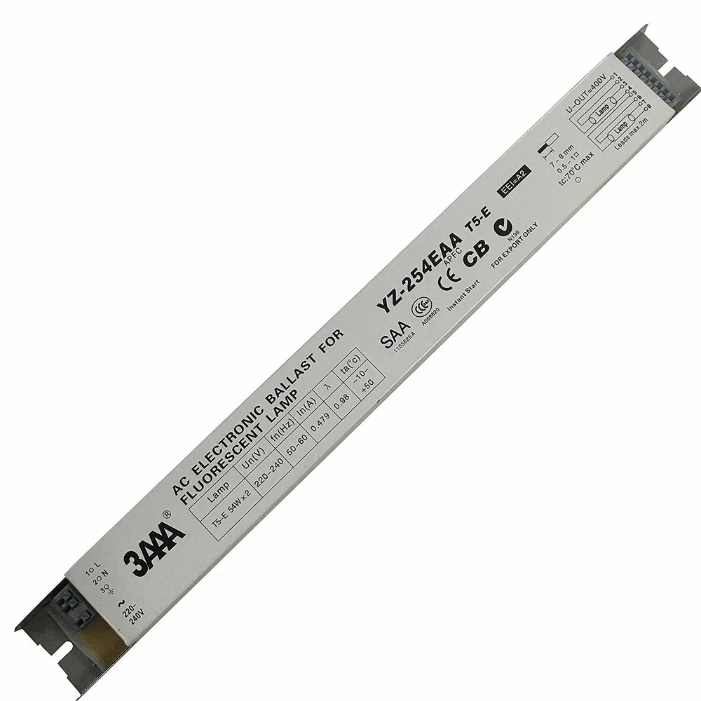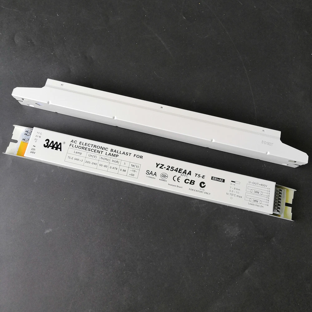 1 Piece 3AAA YZ-254EAA T5-E 220-240V 2x54W Fluorescent Lamp AC Electronic Ballasts Instant Start Attention please : The voltage of the ballast is 220V-240V , please recheck the voltage 220V-240V is suitable for use in your country or not before your order. If you place wrong order, we will not return the payment to you if the cargo shipped. Thanks for your kindly understanding. Shipping: usually it will take about 12-18days from China to US, 10-18days from China to Germany/United Kingdom/France/Spain Model number: YZ-254EAA Voltage: 220-240V, 50-60HZ, U-OUT=400V Suitable Lamp Type: T5-E 54W*2,instant start, lamp quantity: 2pcs, Certificate: SAA, CE, CB Power Factor: 0.98, EEI=A2 Leads max.2m Tc: 70 ℃ ,Ta: -10-+50 ℃ Installation size : 350mm, product size: 360X37X 30cm Application: used in lighting controlling system, such as Aquarium water plant lamp, advertising lamp Packing: 1 Piece lighting ballast