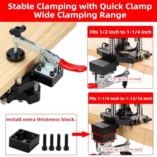 Return Policy Fast Delivery Trusted seller 3-Axis Concealed Hinge Jig Ultra with Extra Hinge Screw Hole Guide and Quick Clamp,Metal Cabinet Hinge Jig,35mm Cabinet Door Hinge Jig Drill Guide,Woodworking Cabinet Doors Mounting Tool Product Description 【Quickly Work and Faster Drilling】 3-axis concealed hinge jig ultra provides most stable drilling and 5 times faster cabinet hinge holes drilling than other hinge jigs. Extra 35mm concealed hinge hole fixed hinge screw hole drill guide make you can drill 35mm holes and small hinge screw hole separate. No need for changing drill bits of your power drill and save much time for woodworking. 【Accurate and Precision Positioning】 cabinet hinge jig with 3-axis drill guide ensure straight drilling all the time. cabinet door hinge jig is the most accurate hinge jig so far. It also reduce the pressure during the process of drilling and pressing down. Save your time, energy and make your work easier. 【Fits for Most Cabinet Hinge Installation】 cabinet door hinge jig is compatible with most cabinet hinges. Easy to setup hinge offset and fits for 2/3/4/5/6mm offset. Have no difficulty on any concealed hinges installation with 35mm hinge hole drilling jig. Our separate fixed hinge screw hole drill guides provides 4 kinds of hinge screw holes spacing including 42x11mm, 48x6mm, 52x5.5mm, 45x9.5mm for most hidden cabinet door hinges installation. 5/64 inch drill bits is included. 【Quick Clamp and Wide Clamping Range】 concealed hinge jig for cabinet doors is built with quick clamp for quickly and stable clamping for different cabinet door. We povides a extra clamping block specially designed for thick wooden boards. The standard clamping range is 1/2 inch to 1-1/4 inch. The extra clamping range is 1-1/4 inch to 1-13/16 inch. You can clamp and fix the concealed hinge jig on the workpiece easier and fast. Save a lot of time and make woodworking easier. 【Work without Dust】 cabinet hinge jig provides a vacuum adapter for 1-1/4 inch and 1-3/8 inch vacuum hose. Compatible with Festool and any other brands vacuums. Greatly improves the efficiency and accuracy of installing cabinet hinges. Ensure a clean working environment all the time when you install cabinet doors and drilling. Shipping Returns Payment Shipping Shipping is FREE to all addresses other than APO/PO boxes in the lower 48 states. All our stock ships from US-based warehouses. Shipped via USPS or UPS (depending on location and package weight) Unless stated otherwise, all orders will ship within 24-72 hours of your payment being processed. Check our feedback to see the great reviews of FAST shipping we offer. Returns Seller does not accept returns Payment We currently accept payment via eBay managed payments only. Once payment is cleared, we will dispatch your shipment within 1-3 business days. Please refer to the "Shipping" tab for more information regarding shipping speed to your destination.