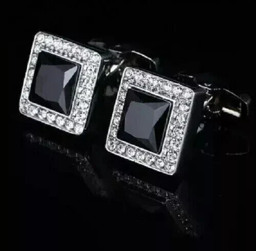 3Ct Princess Cut Lab Created Black Diamond Men's Cufflinks 14K White Gold Plated