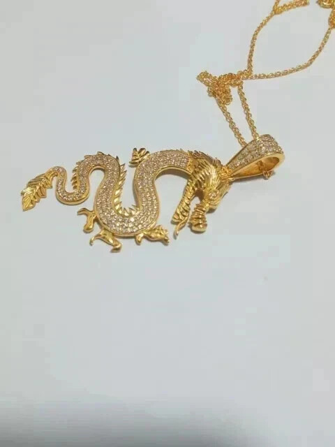 This dragon pendant is absolutely stunning! The 3ct lab-created diamond sparkles beautifully, and the 14k yellow gold finish gives it a luxurious look. The craftsmanship is top-notch, and it feels solid yet comfortable to wear. The seller was super responsive and delivered exactly as promised. Great value for the price—highly recommend for anyone wanting a bold, eye-catching piece!