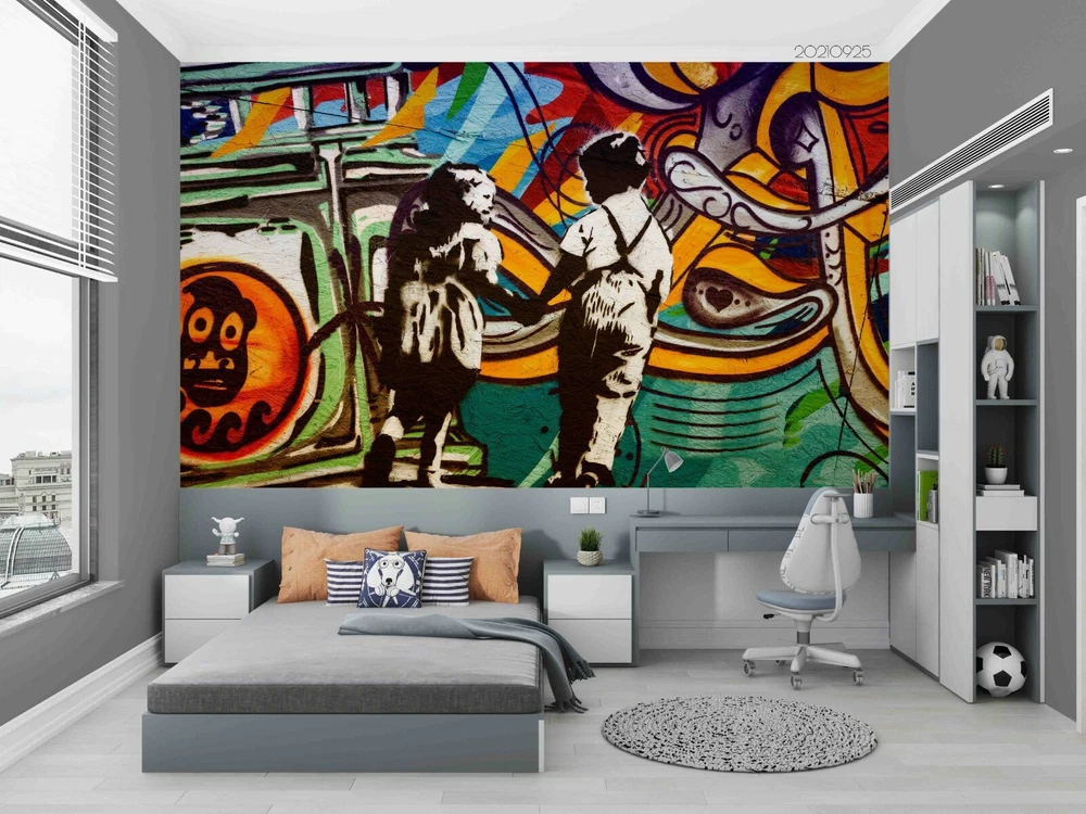 3D Abstract Artistic Graffiti Self-adhesive Removable Wallpaper Murals Wall 378