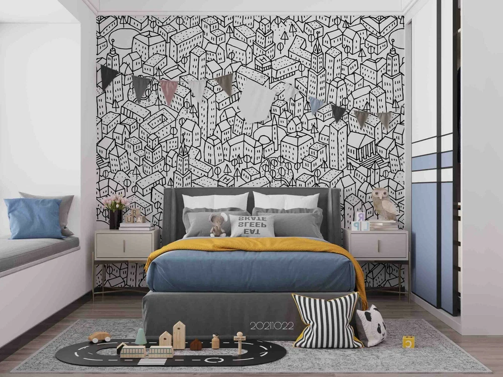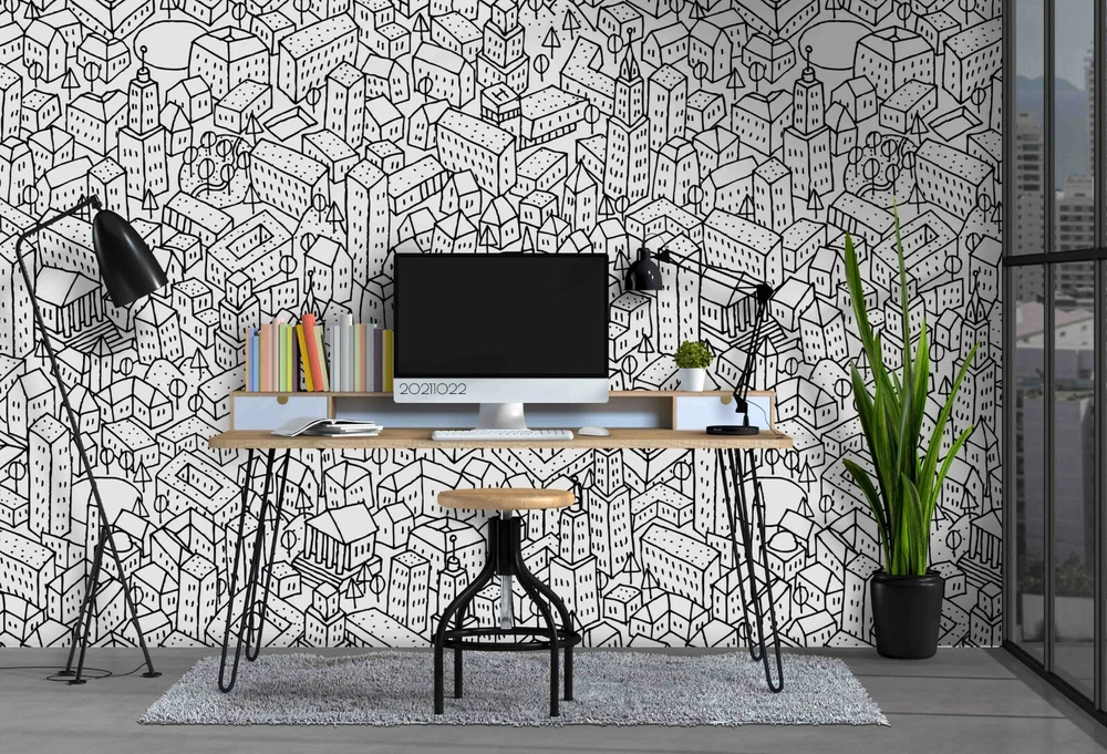 3D Abstract City Building Graffiti Self-adhesive Removable Wallpaper Murals Wall