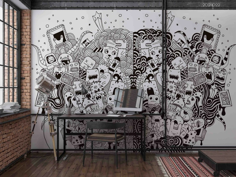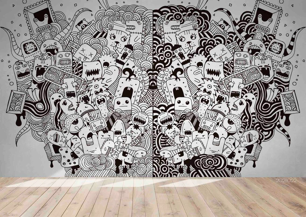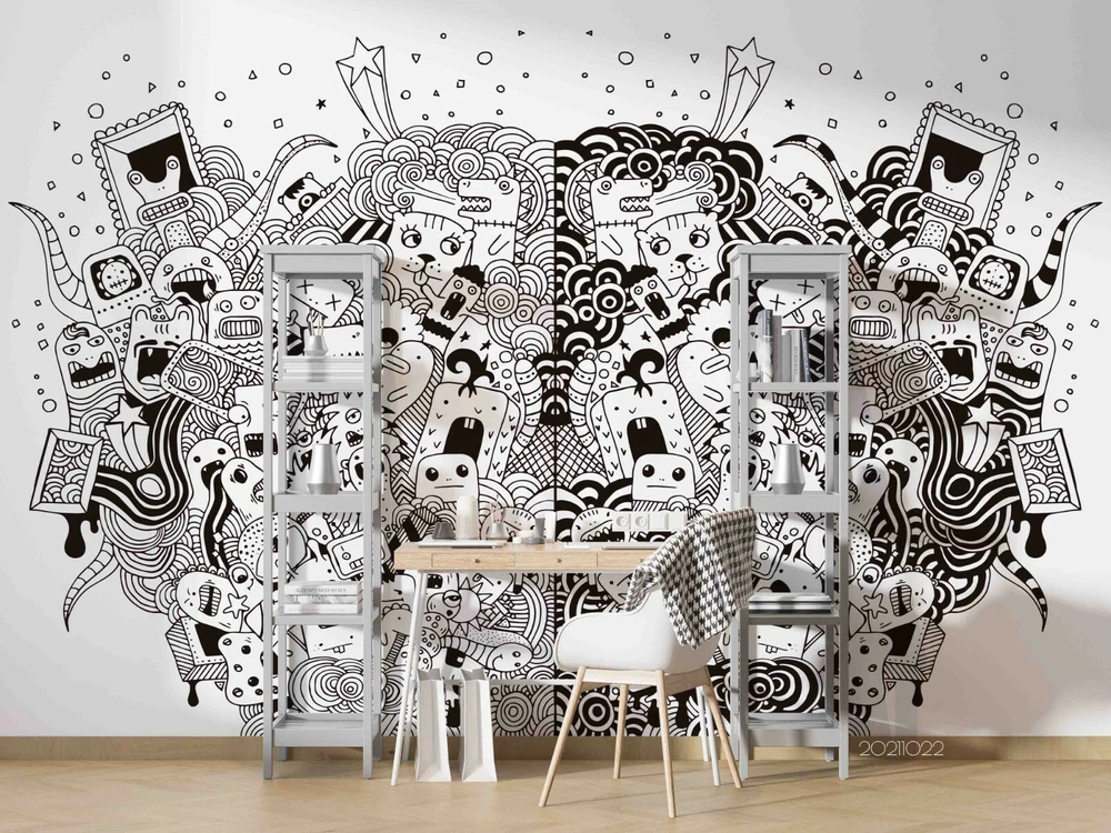 3D Abstract Doodle Animal Self-adhesive Removable Wallpaper Murals Wall 646