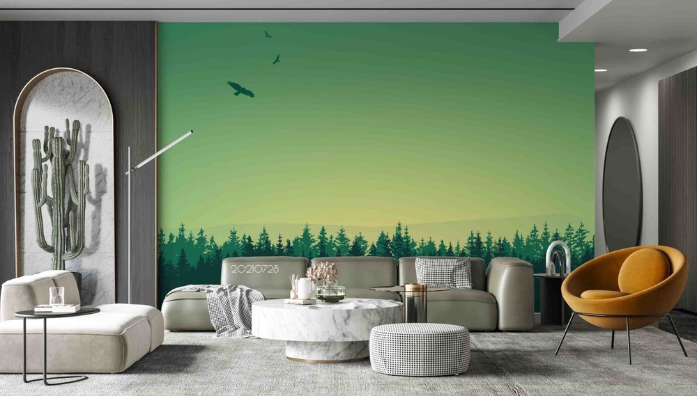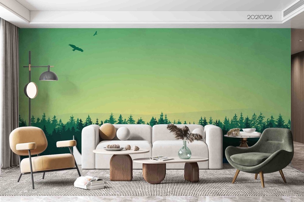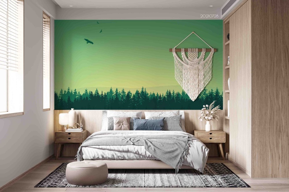 $ 14.233D Hand Drawn Pine Forest Pattern Wall Murals Wallpaper Murals Wall Sticker