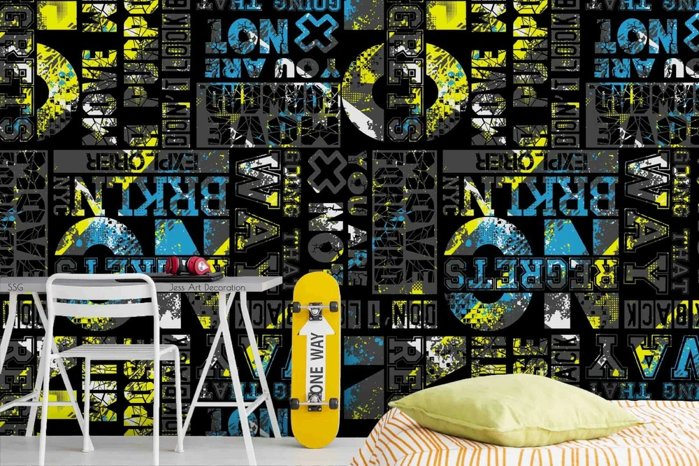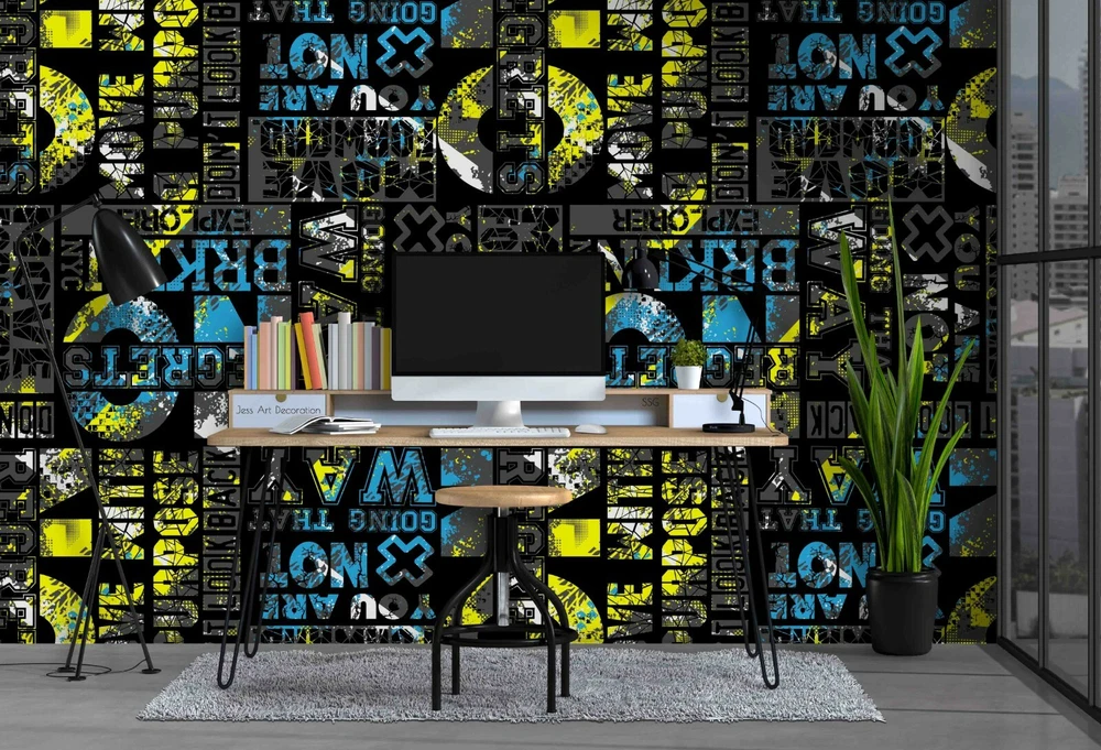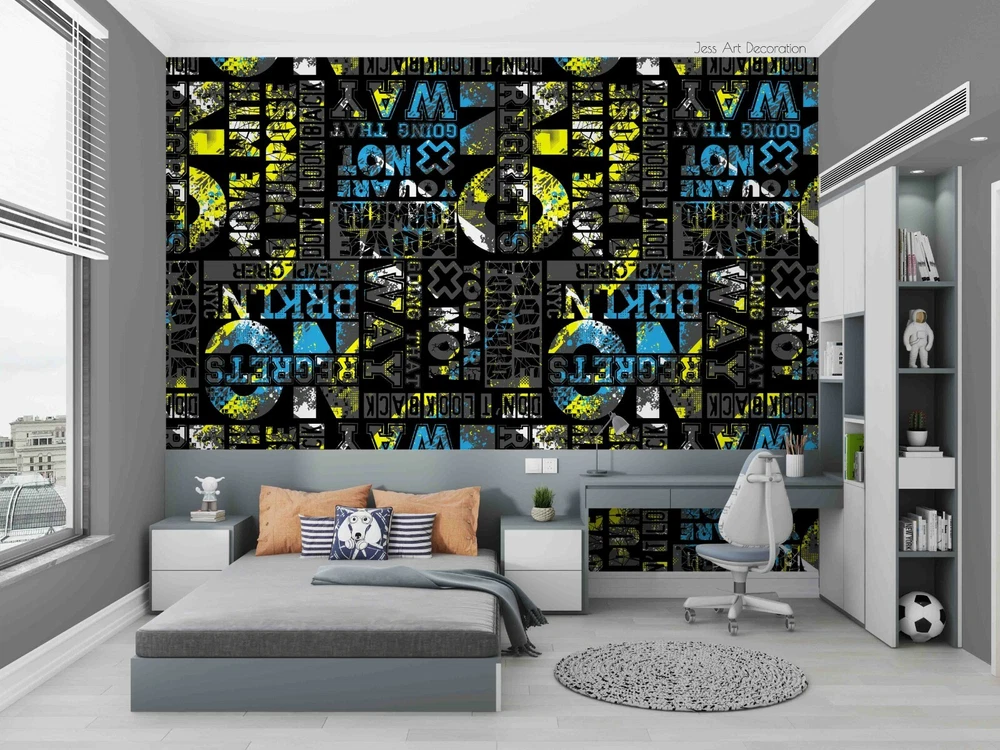 3D Abstract Graffiti Alphabet Self-adhesive Removable Wallpaper Murals Wall 93