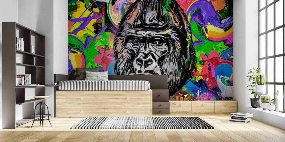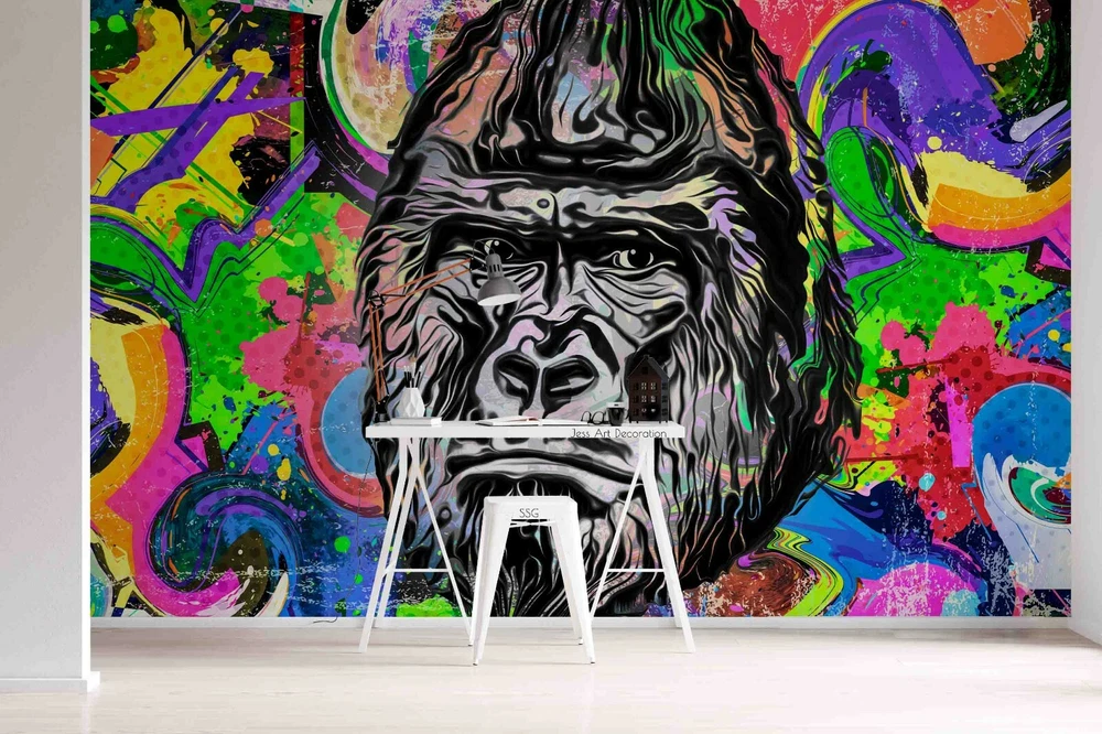 3D Abstract Graffiti Gorilla Self-adhesive Removable Wallpaper Murals Wall 103