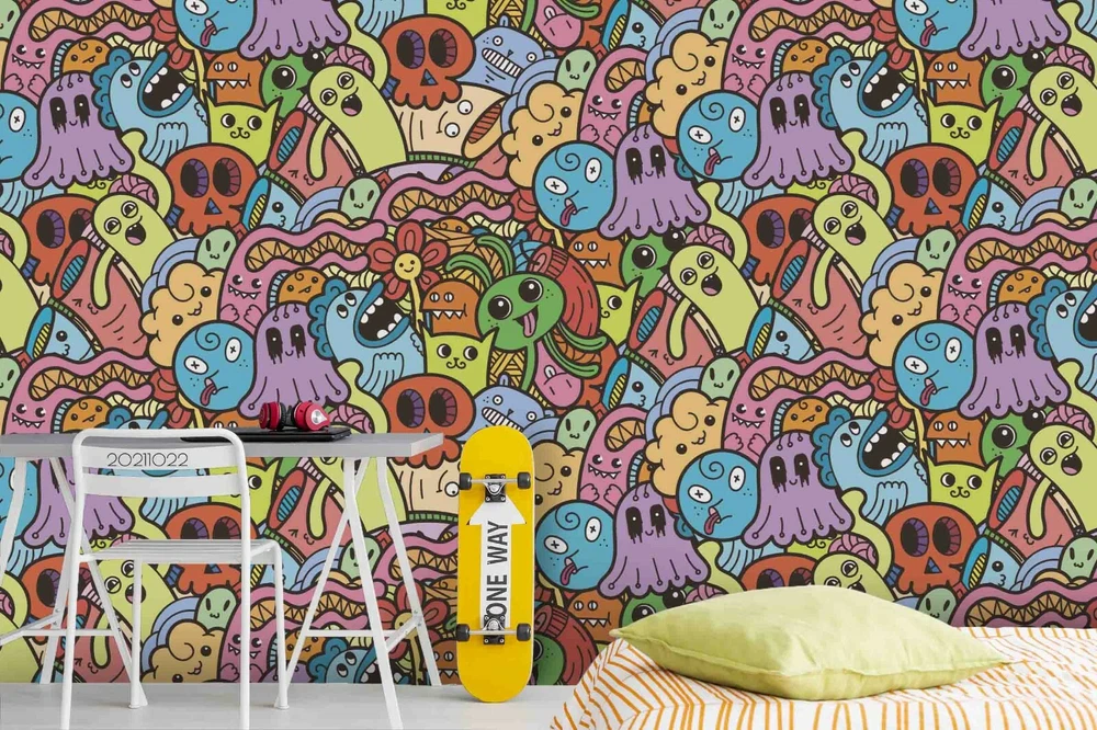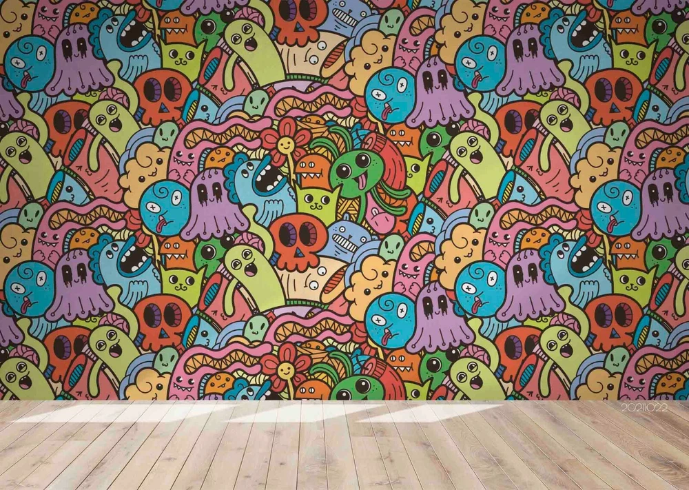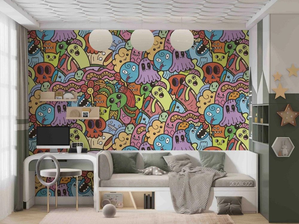 3D Abstract Graffiti Monster Self-adhesive Removable Wallpaper Murals Wall 639