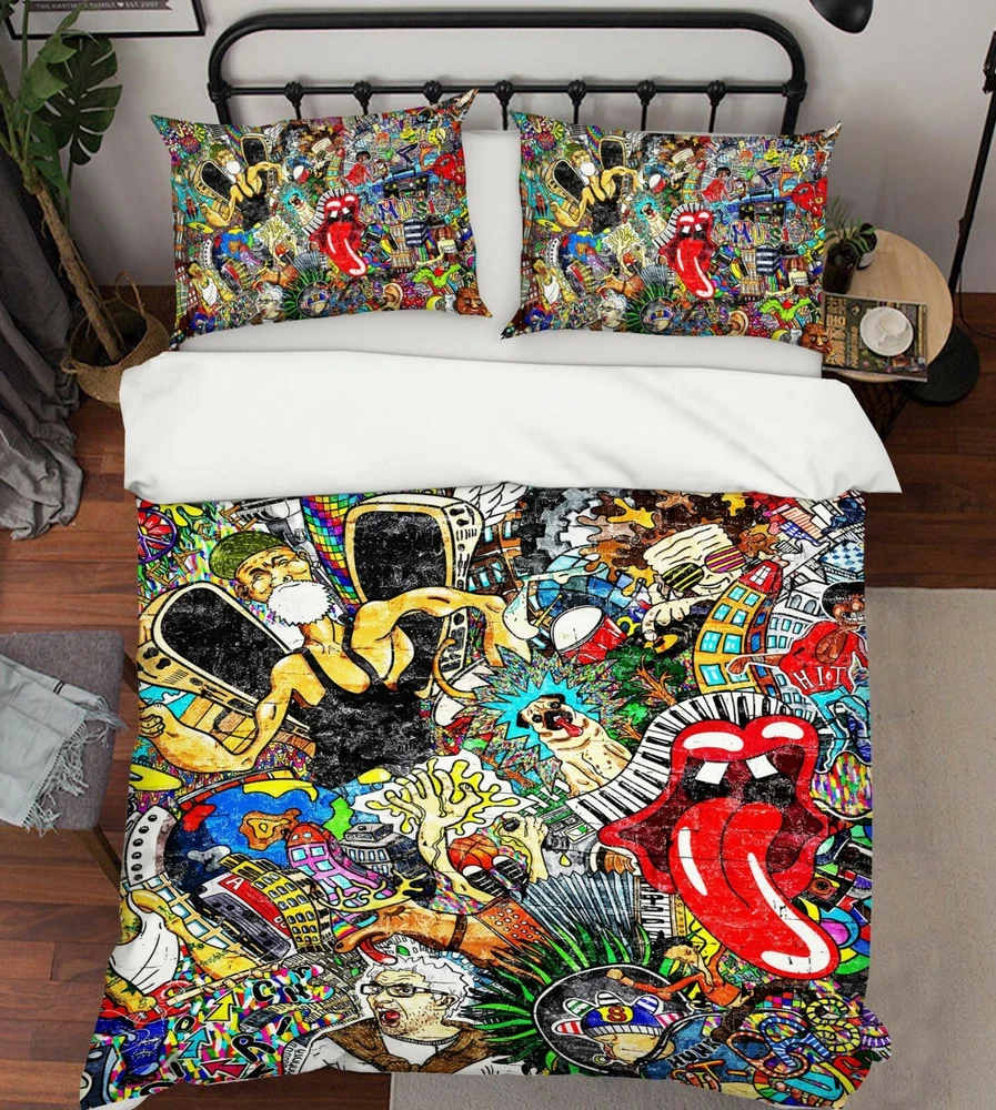 3D Abstract Graffiti ZHUA68 Bed Pillowcases Quilt Duvet Cover Set Queen King Amy