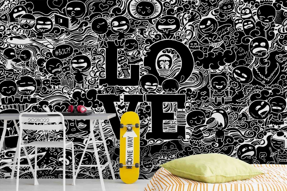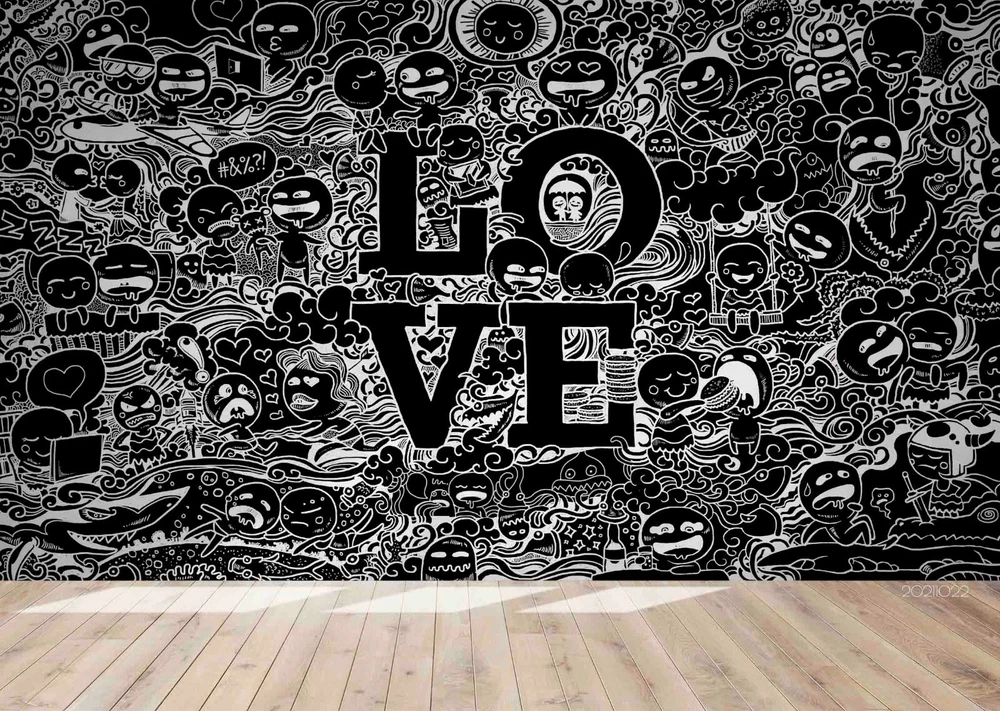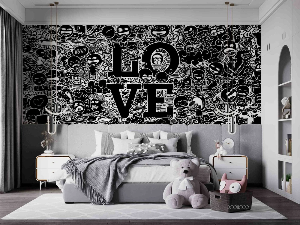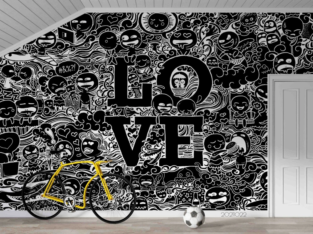 3D Abstract Love Graffiti Self-adhesive Removable Wallpaper Murals Wall 572