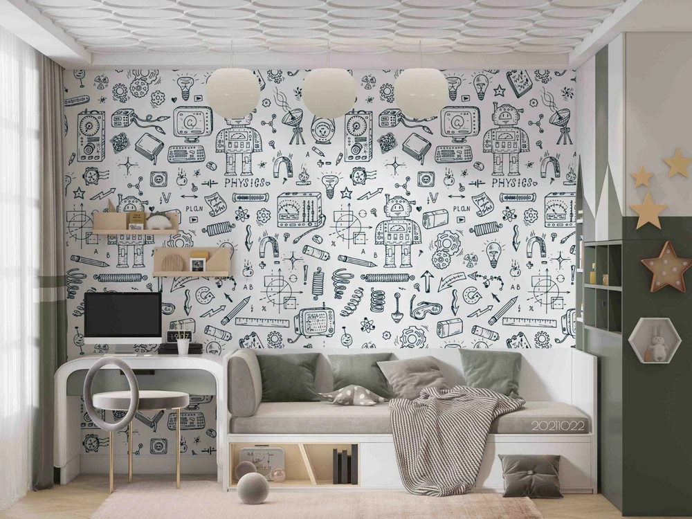 3D Abstract Robot Graffiti Self-adhesive Removable Wallpaper Murals Wall 664