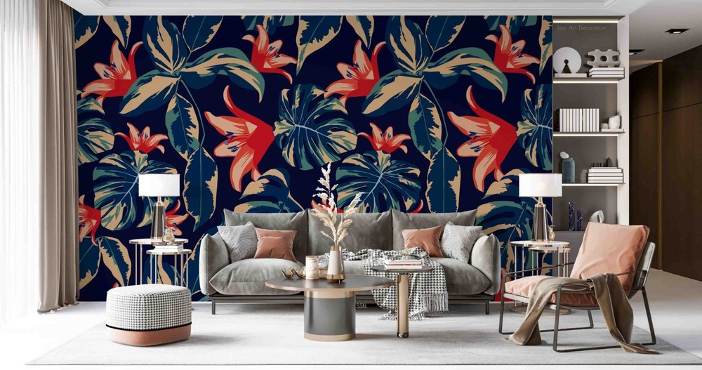 $ 15.013D Blue Black Plants Leaves Pattern Wall Murals Wallpaper Murals Wall Sticker